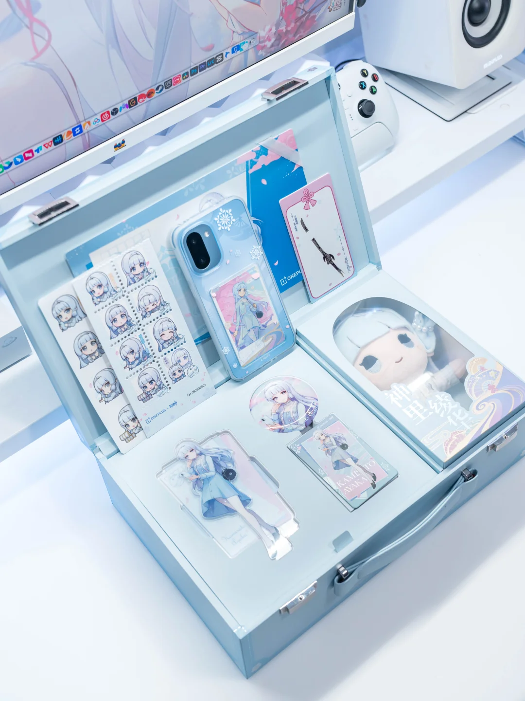 一加&神里绫华联名手机📱 真的太美啦!!! 打开满满的全都是心意~ 礼盒内全部13种周边全都好好看! - ❄️神里绫华手机壳 ❄️神里绫华毛绒公仔 ❄️神里绫华亚克力立牌 ❄️神里绫华Q版纪念邮票 ❄️神里绫华Q版表情贴纸 ❄️神里绫华纪念镭射票 ❄️神里绫华马口铁叠闪人物徽章 ❄️「雾切之回光」卡针 ❄️「白鹭偏途」角色卡*2 ❄️「白鹭偏途」主题海报 ❄️致旅行者的一封信 ❄️100w超级闪充充电器 ❄️神里绫华主题充电数据线 ————————————