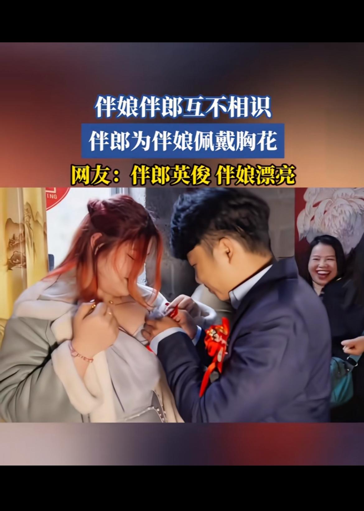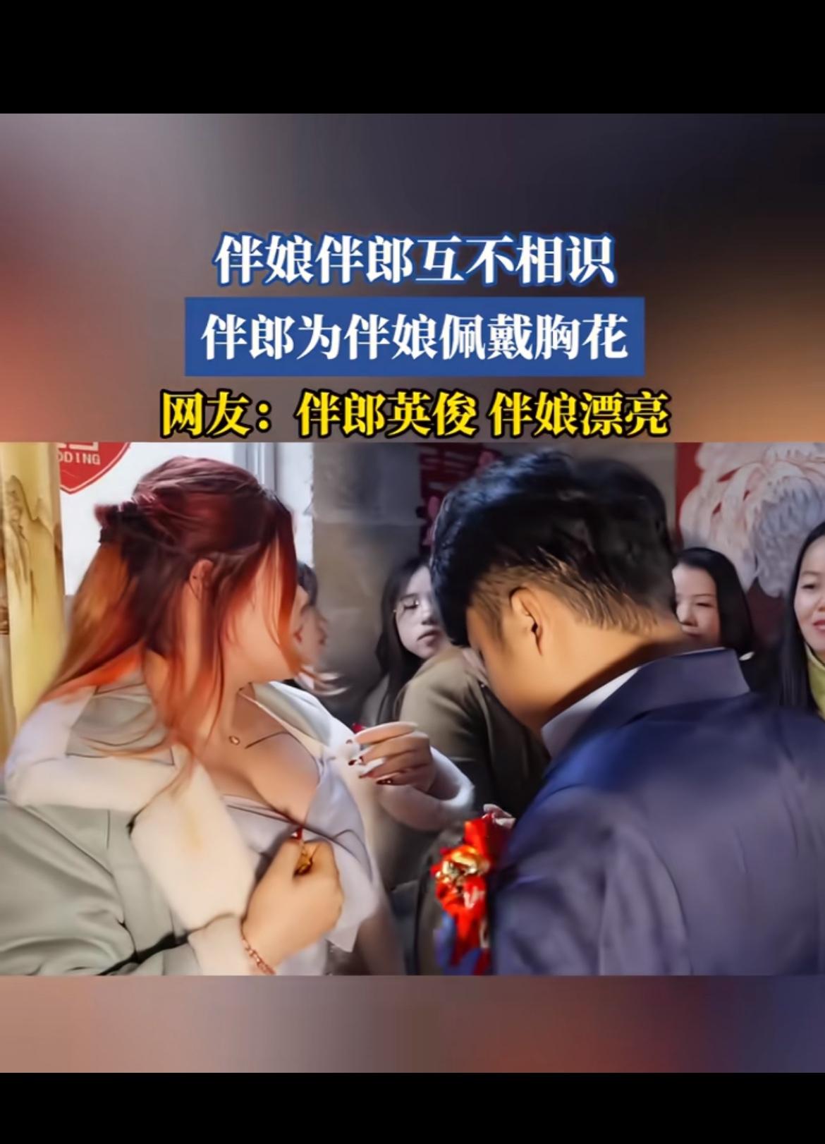 婚礼上伴郎伴娘互动总能整出不少乐子。河北一场婚礼上,伴郎给伴娘戴胸花的视频火了。伴郎伸手靠近伴娘胸前,紧张到手抖,胸针都不听使唤。伴娘撩头发强装镇定,耳根却红透了,旁边男的都投来羡慕眼光,网友调侃伴郎回去都不想洗手。 不过也有玩脱的。广东一场婚礼上,伴郎伴娘相互戴胸花气氛暧昧,伴郎羞涩闭眼,把新郎新娘表情弄得很尴尬。玩闹还是得把握尺度,不然乐子就变成糟心事咯。