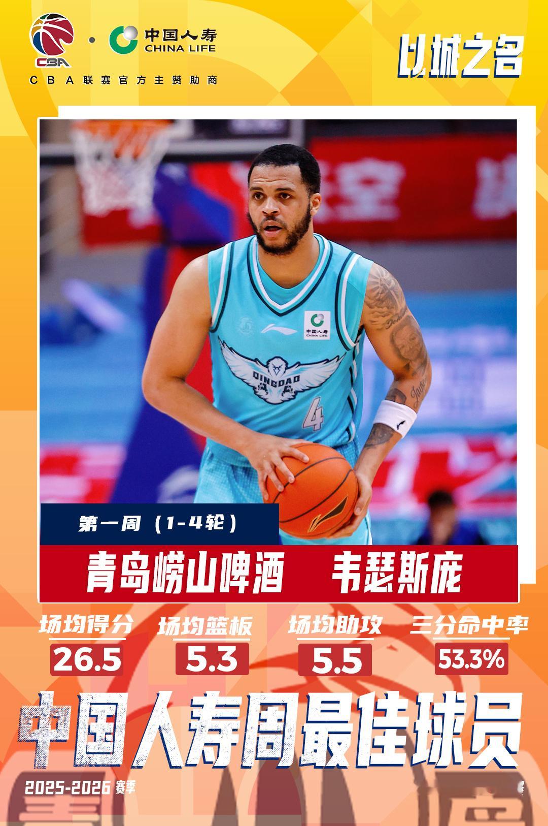 CBA第一周周最佳:陈盈骏和韦瑟斯庞。CBA
