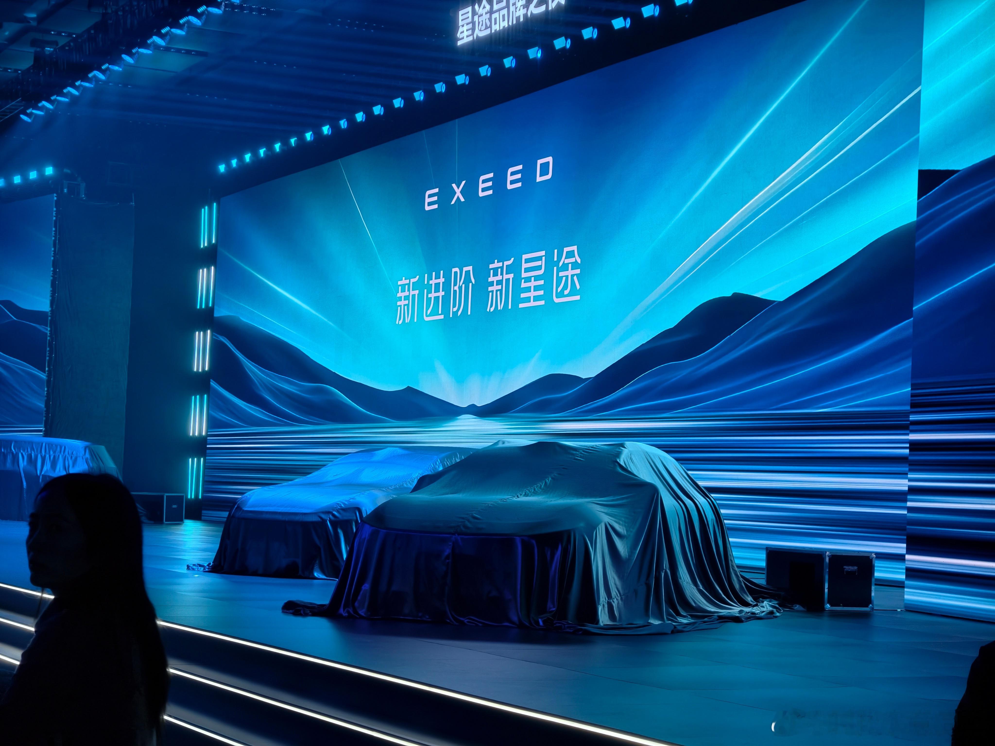 来2025星途品牌之夜,见证星途品牌内核的深度进化啦!现场有四辆被盖住的车,不知道是不是接下来的新车型呢 新进阶新星途星途汽车将全面开启3.0时代EXEED星途汽车