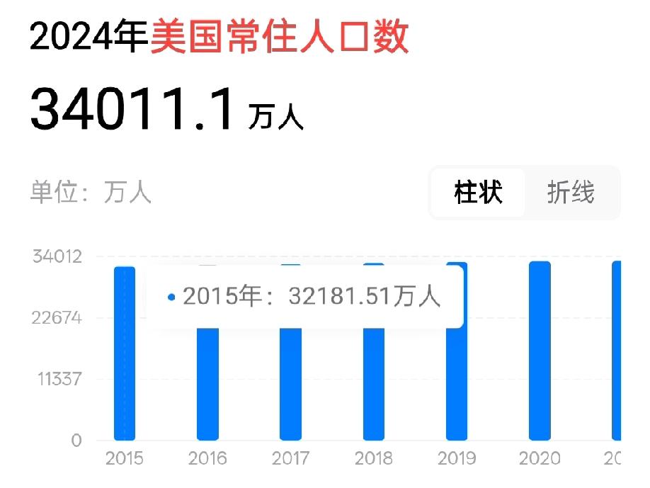 美国每年有源源不断的移民人数,但总人口控制的非常不错,维持在3.4亿人。 是有哪