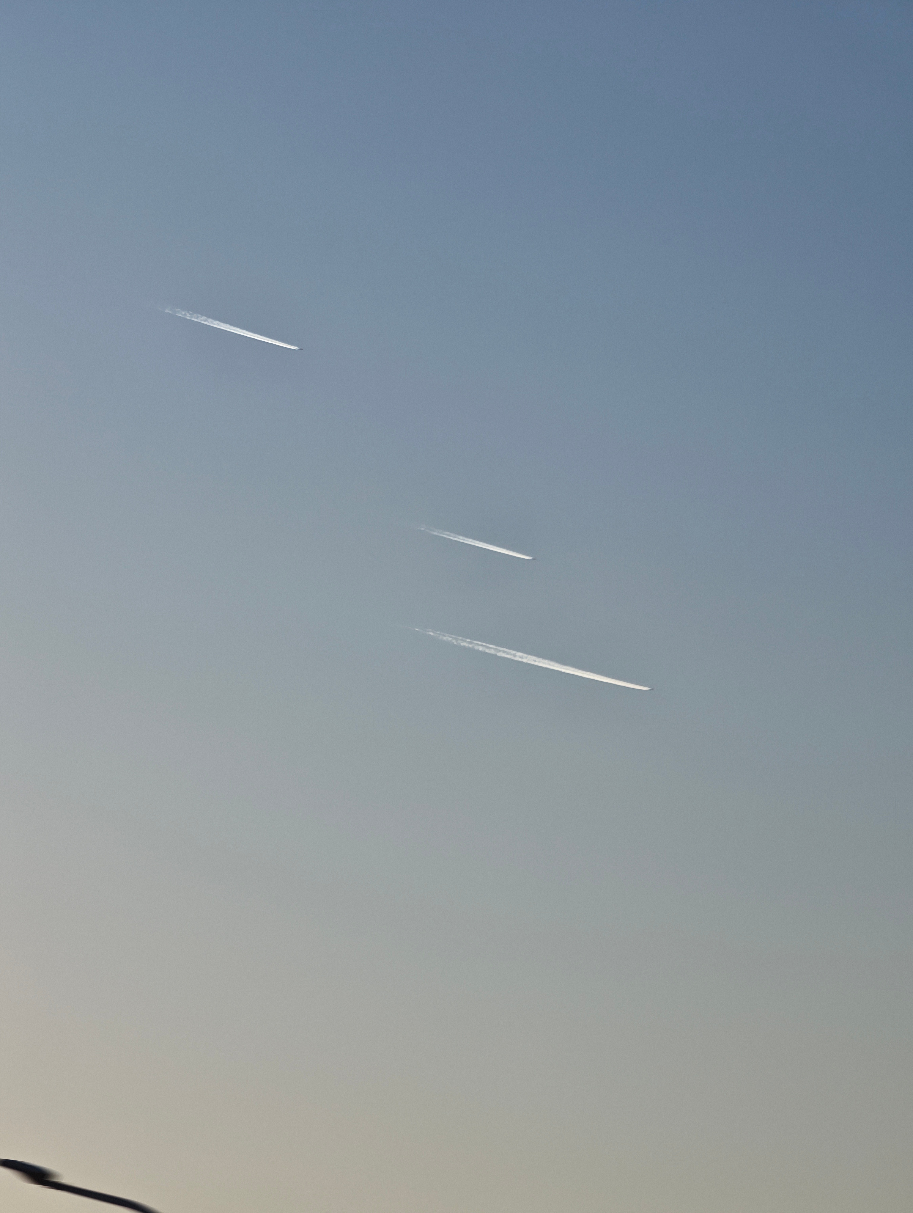 出门银装素裹,一抬头三架飞机同框,跟流星似的~北京下雪