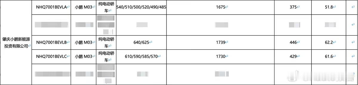小鹏MONA M03新款公布12月22日,最新一期《减免车辆购置税的新能源汽车车型目录》公布了新款小鹏MONA M03的电池及续航信息。在电池与续航层面,新款小鹏MONA M03提供三种容量的电池版本,全系搭载亿纬动力磷酸铁锂电池。其中,51.8kWh版本对应多档续航里程,覆盖485km-540km区间;61.6kWh版本续航里程为570km-610km;62.2kWh版本则可实现625km、640km两种续航表现。汽场全开小鹏monam03小鹏汽车