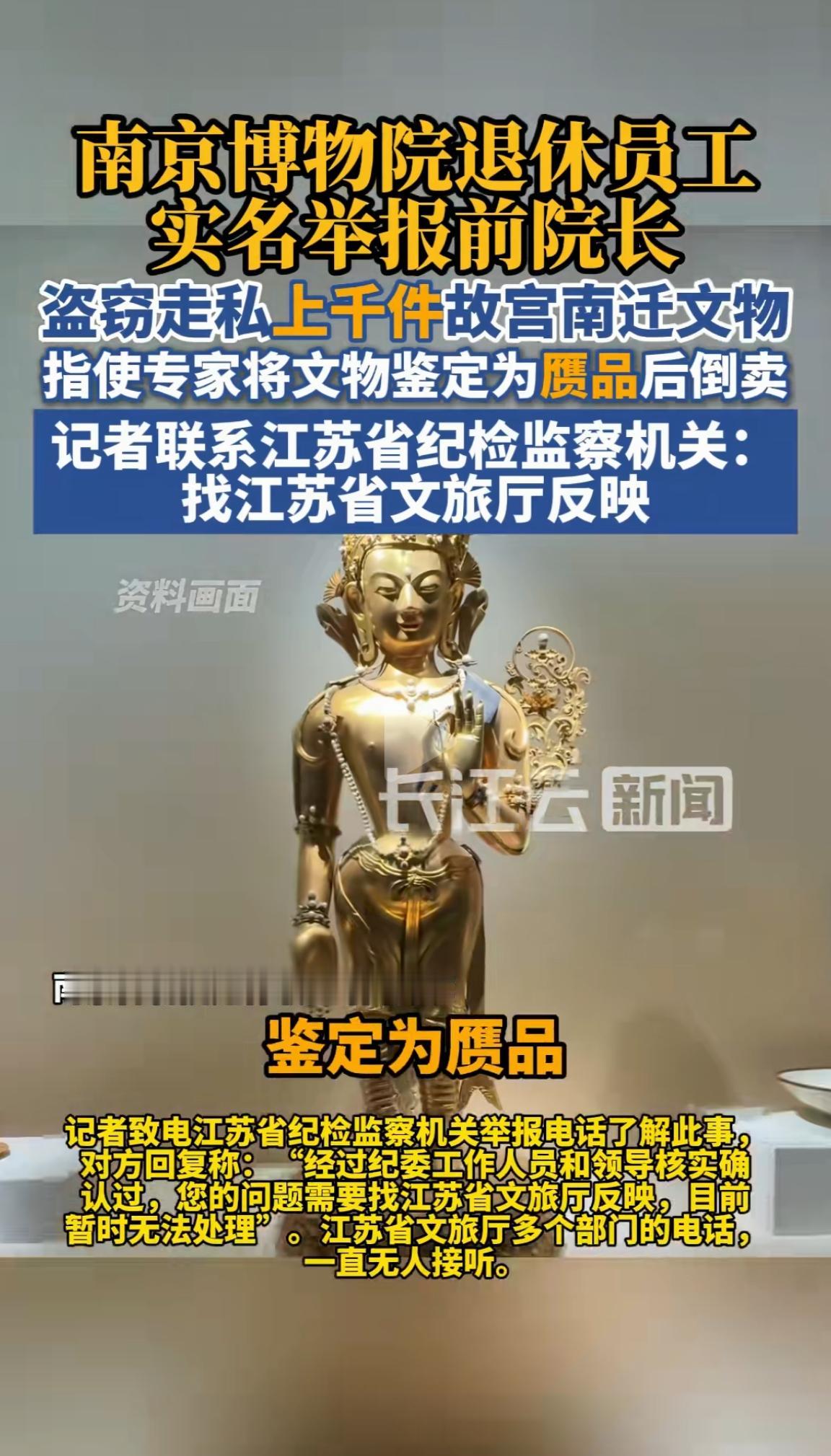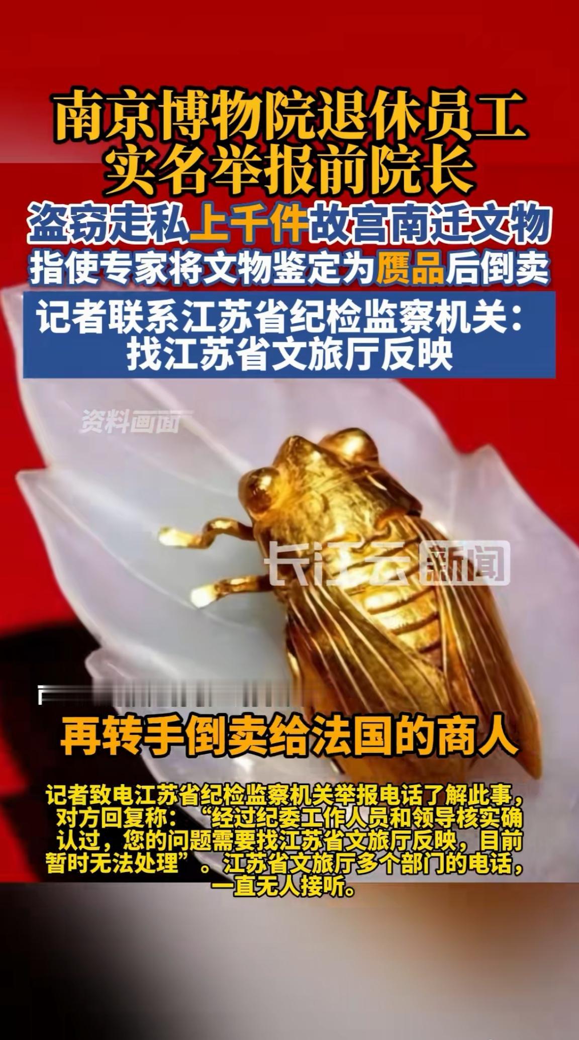 直接说出的答案,这个事情最终不会有大家想象中的结果。 因为本来只是五幅文物名家古画的事,现在又被40多名前职员举报前院长升级为造成数以千计的国宝流失。 可以想象这事如果查清楚,范围需要多大? 请注意关键词: 一,数以千计的国宝文物。 二,组织人员鉴定为赝品。 三,倒卖给外国商人。(应该不是全部) 四,2010年就开始多部门反映(15年了) 现在事情弄的这么大,真心不理解前院长为何还能如此淡定,心里一点不带害怕的。 更为关键的是:全国博物馆应该来一次彻底的文物摸底大检查,改掉不合理的规则堵上漏洞。 千万不能让馆长院长的,既当裁判员又当运动员。 自己监督自己,面对的又是价值几百上千万甚至过亿的国宝文物。 这是赤裸裸的考验人性。