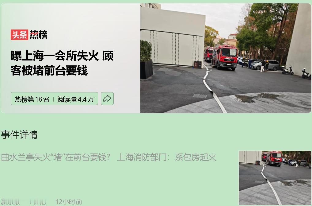 你敢信吗?消防车都在门口拉水带了,穿着浴袍逃出来的客人,愣是被前台拦下——“先生,您先结个账”。 这不是电影,是前几天上海某家“高端”会所的真实操作。简直是离谱他妈给离谱开门——离谱到家了。 火灾当前,他们的第一反应不是救人,是“拦路收费”。店员还跟顾客说那是“消防演练”,事后对质,直接甩锅让“自己去问消防队”。这波操作,真的绝了。它暴露的东西,比那点烧着的火苗,吓人多了。 首先,这根本不是疏忽,是彻头彻尾的“要钱不要命”。火灾疏散是争分夺秒的事,黄金时间就那么一会儿。你把收银台变成逃生路上的“收费站”?这是把顾客当人质,还是当ATM?心里那本账,算得清清楚楚:钱比命重要。 其次,撒谎成性,糊弄成精。从“演练”到“无可奉告”,这家店对真相和公众,有半点尊重吗?一家连句真话都不敢说的店,你敢信它能管好你的安全?更别说,它背后的公司,因为不按规定登记客人信息,今年已经被罚了两次。劣迹斑斑,都是习惯。 说到底,这就是一套“赚钱至上”的冷酷逻辑。什么安全底线,什么法律责任,在利润面前都得靠边站。今天能为了收钱堵门,明天就敢为了省钱动消防设备。所谓的“高端”,只是它收割你的包装纸。 那我们能怎么办?很简单,用脚投票。远离这种不把命当回事的地方。你的每一次消费,都是在为你想要的世界投票。别让这种“安全PUA”的店,觉得好欺负。 市场有市场的规律,法律有法律的底线。罚酒三杯要是有用,它就不会一犯再犯。希望这次,监管能来得更硬气点。 最后说句大实话:什么高端服务,在生命面前,都是摆设。一个守不住安全底线的场所,就不配拥有顾客。这事,没得洗。曝上海一会所失火 顾客被堵前台要钱