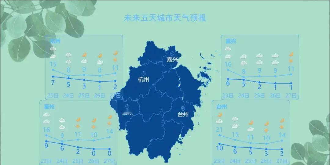 这天气,真是像坐过山车!前几天还冷得瑟瑟发抖,今天太阳公公就露脸了,气温蹭蹭往上跑。 就说今天早上吧,浙江北部那嘎达,冷到只有两三度,平湖更是可怜,才零点几度。不过大家也别慌,今天白天升温速度快,浙北能到十几度,其他地方更是十五六度,一下子就暖和起来了。 更夸张的是明天,冷空气一走,气温直接飙升,最高能有二十一度,部分地区可能还会下点小雨,感觉不像冬天,倒像是春天要来了。 但是!注意啦!天气要变脸了。温暖只是短暂的,24、25号又有新一股冷空气杀到,降温、下雨,还有大风,一个都不少。而且这次的雨水可能比之前还要多,浙中地区甚至可能有中雨。 这波冷空气一来,25号到29号早上,大部分地区都冷飕飕的,湖州、绍兴、衢州那几个地方,更是要连续两天跌到零度以下。24号到26号,最高气温也上不去,基本都在10度以下。 到了30号,还会有冷空气补充,所以大家做好心理准备,冬装是时候安排上了。这次降温后,想再暖和起来,估计就难了,浙江的冬天算是正式开始了!
