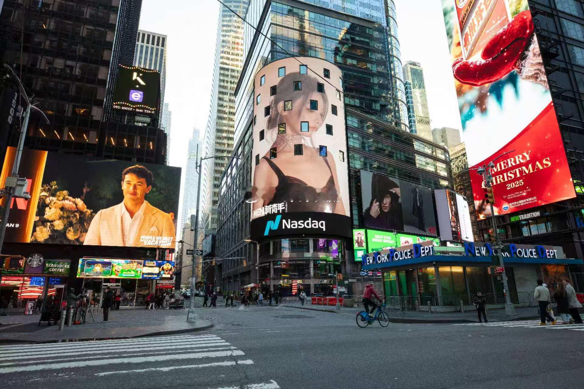 彭小苒登纽约时代广场大屏 纽约时代广场大屏上,彭小苒眼神如炬、气场爆棚!与《
