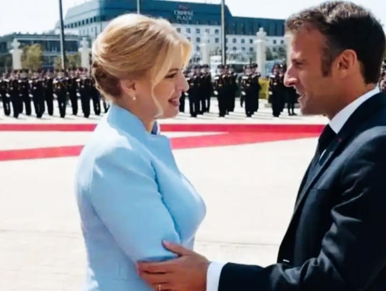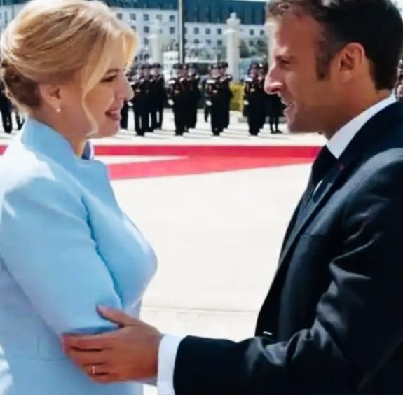 马克龙和斯洛伐克前总统苏珊娜互相对视的眼神是不是很特别啊? 两人互相看向对方的眼神仅仅是代表礼节性互动吗! 还带有什么意思呢? 苏珊娜脸上微笑的表情是不是很甜美啊?