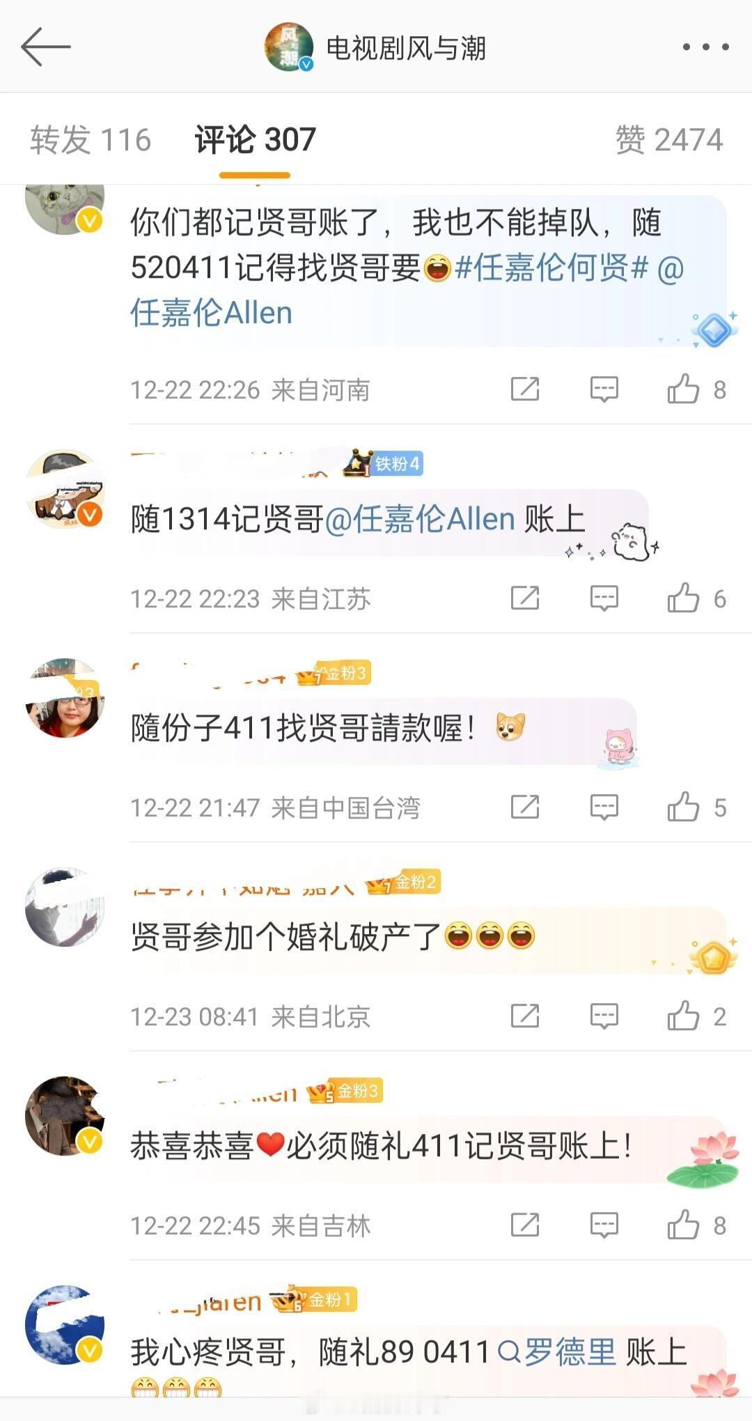 马万祺结婚何贤突然就收获一堆债风与潮官博:不敢数贤哥在这个评论区“欠”了多少钱 这大概就是“家(嘉)人”吧