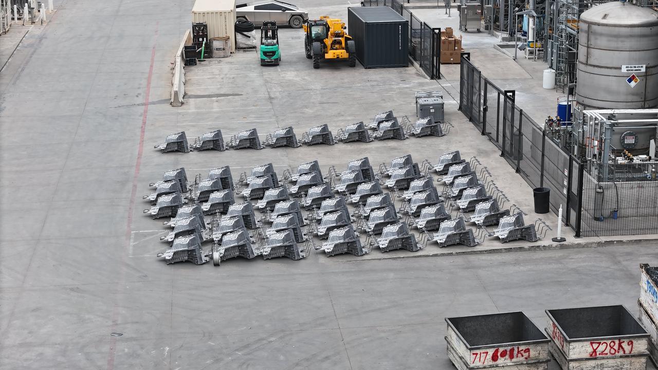 乔·泰格特迈尔拍摄的无人机照片显示,德克萨斯州超级工厂的铸造厂附近堆放着数十个大型 Cybercab 铸件,有些放在地上,有些放在货架上。此外,今天在碰撞测试设施旁边也看到了更多Cybercab,其中一些没有覆盖物,可以清楚地看到它们的内部结构。表明截至 2025 年 12 月 22 日,预生产模具工作正在积极进行。 在碰撞测试区域附近发现的 Cybercab 展示了 2024 年 10 月发布的紧凑型无方向盘设计,最新版本还包括改进的内饰和座椅,以提升舒适度。 根据 12 月份的报告,特斯拉正在加紧招聘和测试,目标是在 2026 年年中实现量产,根据该公司的预测,这将有望推出机器人出租车车队,从而将城市交通成本降低 50% 至 70%。