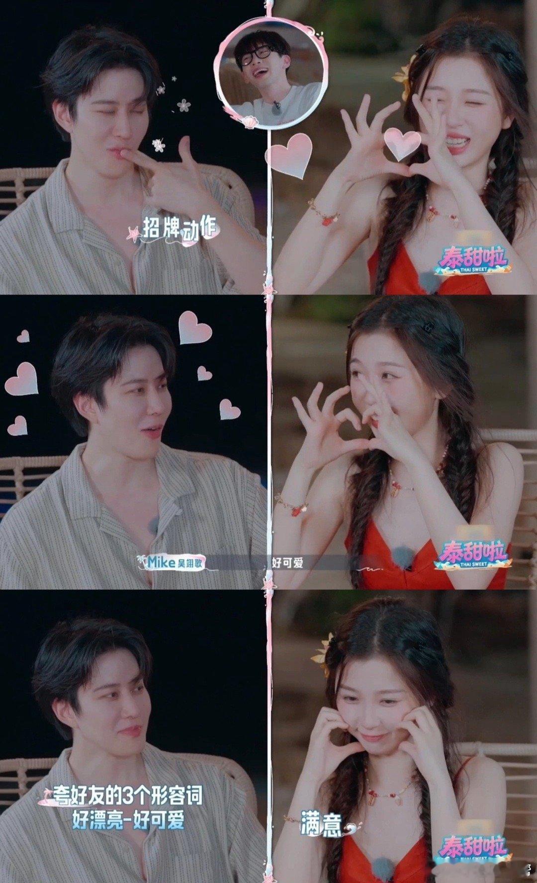 虞书欣和mike太好笑了 这对互动请半永久!Mike压嘴角狂夸,欣欣子眨眼卖萌,