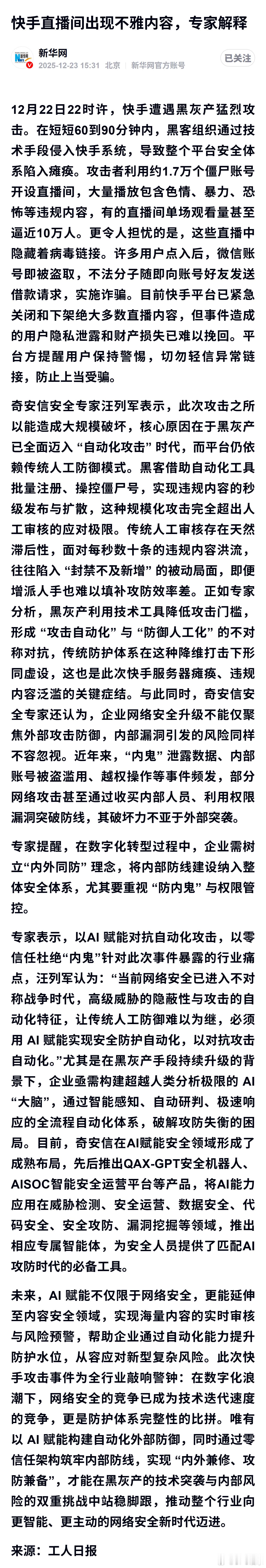 这是非常严重的黑客入侵事件,甚至可以说这就是网络战争。23号晚间快手平台突然遭