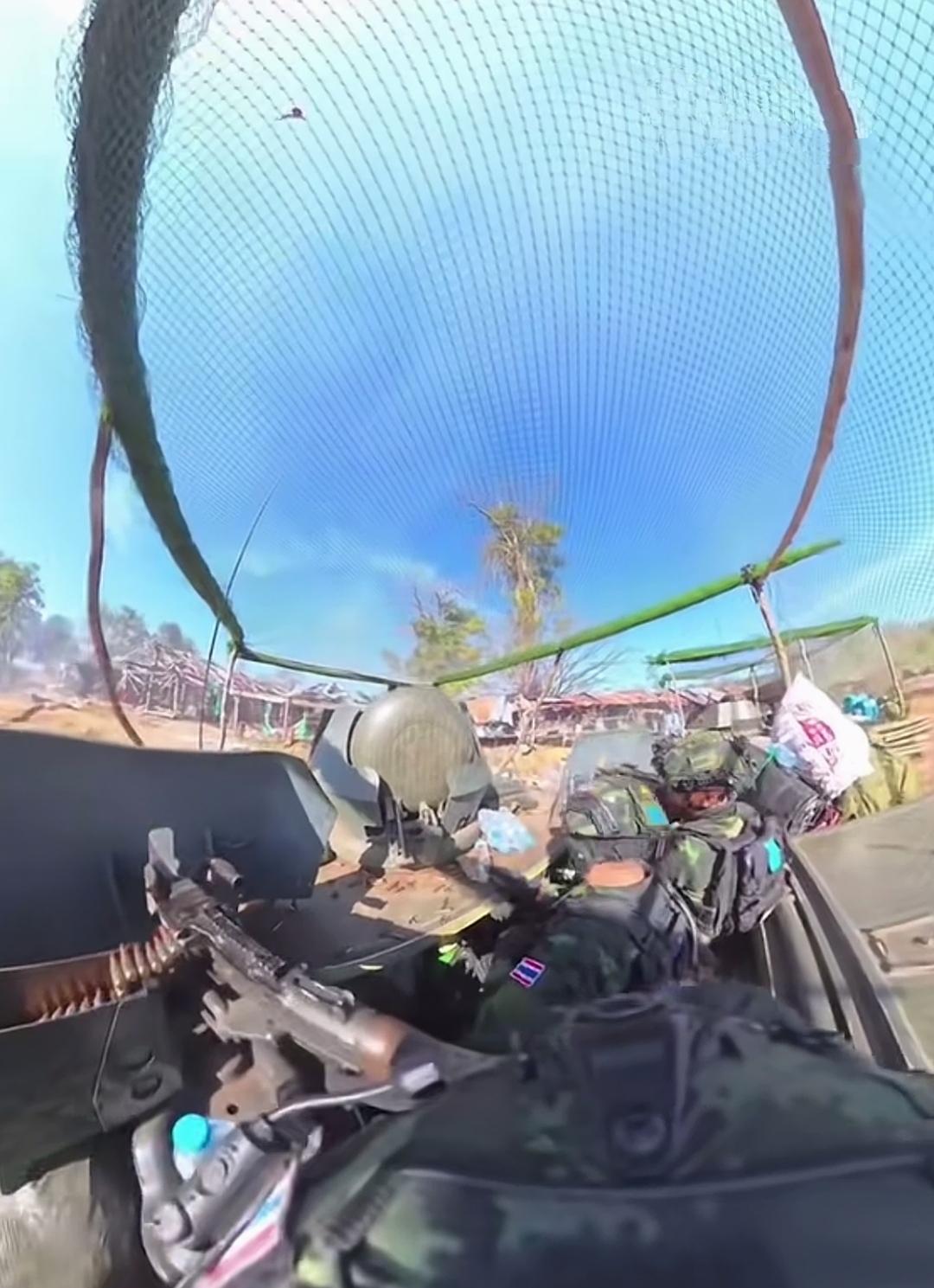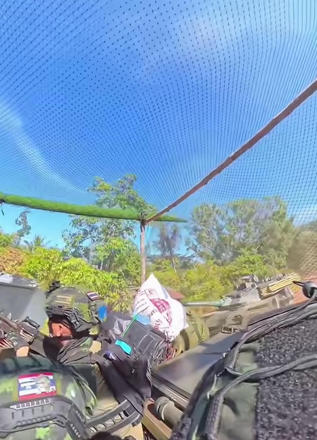 从泰柬冲突前线传出的视频,可以看出以下几点: 战车防无人机,除了电子信号扰干扰之外,头顶一层防护网,还是挺实用的。 我觉得士兵应该把霰弹枪作为标配,专门用来对付无人机。 看到了vt4坦克活跃在前线,之前的一些负面传闻,不攻自破。 视频能传到网上,说明前线并没有限制士兵使用手机。 这只能说明两个国家这次武装冲突的科技水平不高。 战车上还有瓶装水,难道士兵不配备水壶吗?