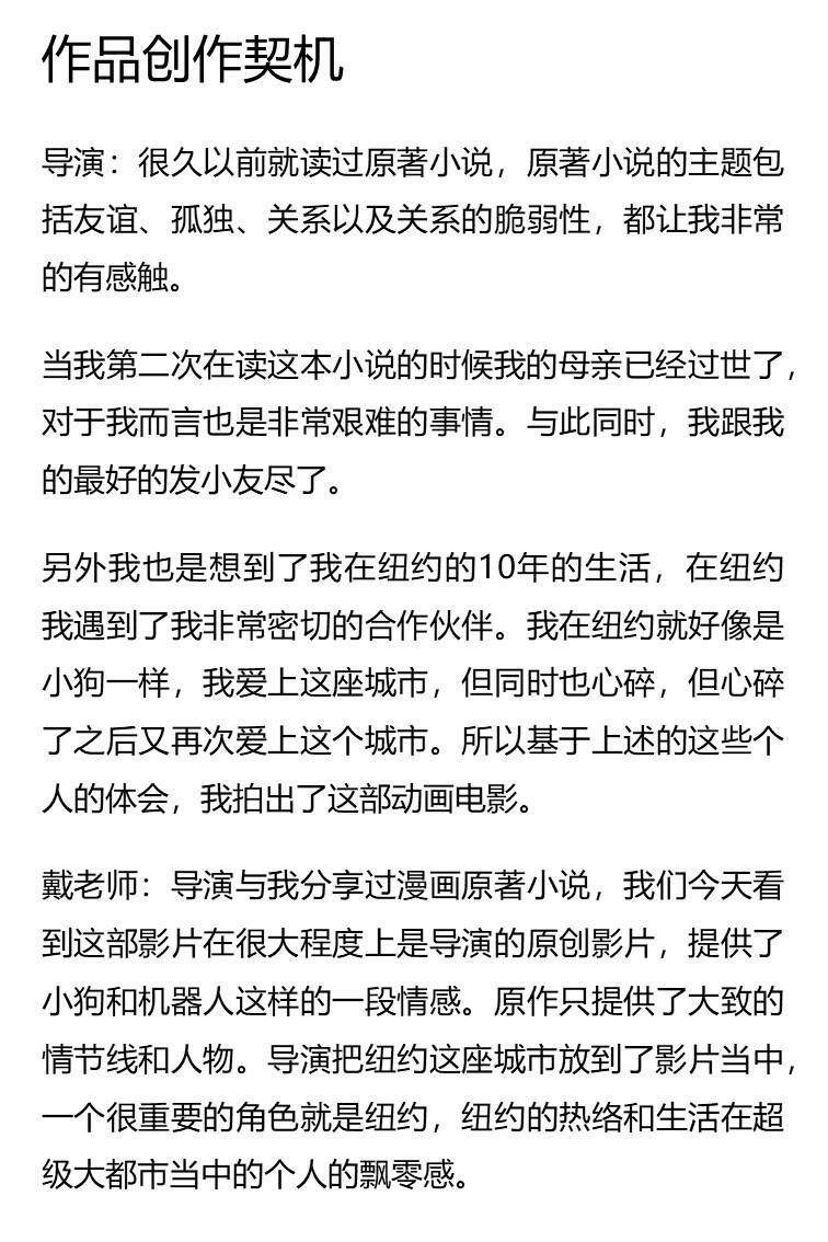 机器人之梦导演与戴锦华神级联动 最好的作品需要最好的解读。导演用动画探讨陪伴与孤