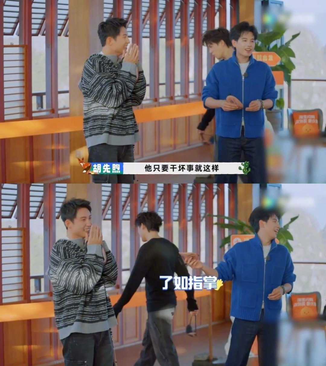 黄景瑜满脸写着冰清玉洁 黄景瑜在《现在就出发》里完美演绎了什么叫“做贼心虚”!弹完胡先煦就默默退到角落背手憨笑,满脸都写着“我很乖没干坏事”,结果被兄弟们一秒拆穿——这老实人撒不了谎的体质也太可爱了!