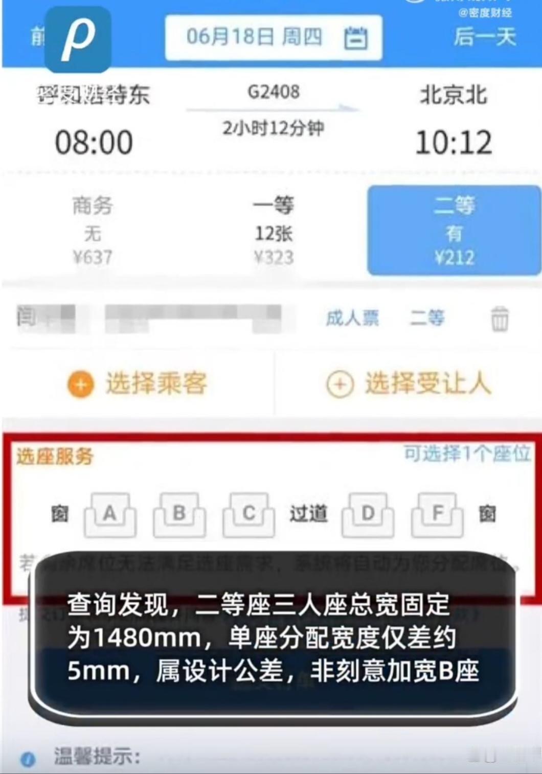近日,“高铁B座是否真的更宽?”的话题在网络上引起热议,12306如何回应? 近日,“高铁B座是否真的更宽?”的话题在网络上引起了广泛讨论。据12306客服中心回应,不同车型的二等座座位尺寸均为统一标准,不存在B座比其他座位更宽的情况。然而,也有网友反映,在部分高铁车型中,B座比两侧座位略宽约5毫米。对此,12306客服表示,这主要是由于不同车次所使用的列车车型、车厢版本存在差异所致。无论是哪种说法,12306均强调,具体座位宽度应基本一致,乘客在乘车过程中若感觉不适,可联系列车工作人员协调座位。这一事件引发了公众对铁路服务细节的关注,同时也凸显了铁路部门不断优化服务的努力方向。