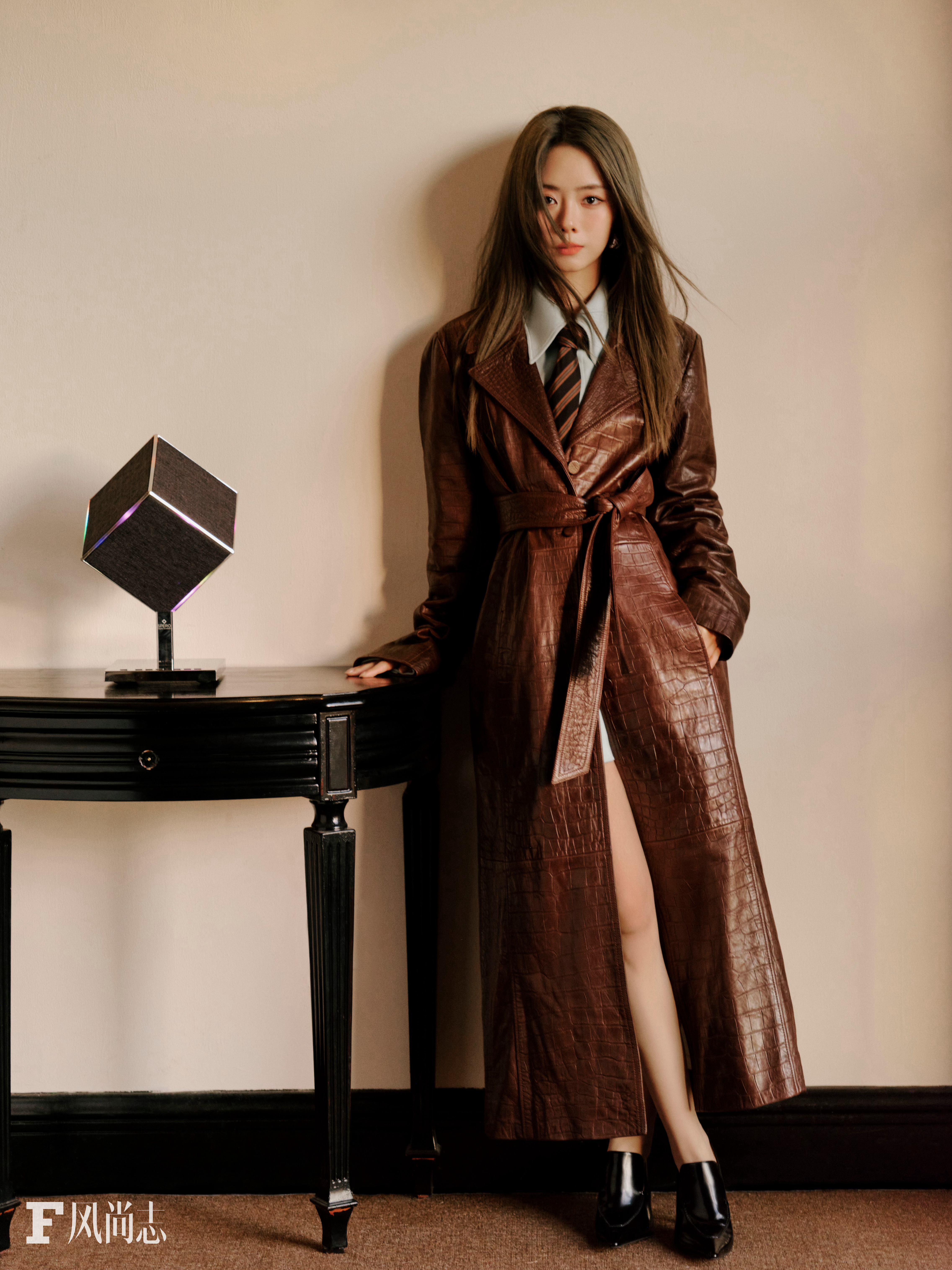谭松韵出镜的《F 风尚志》十二月刊封面大片中 ,来自意大利高端音响品牌 DUOM