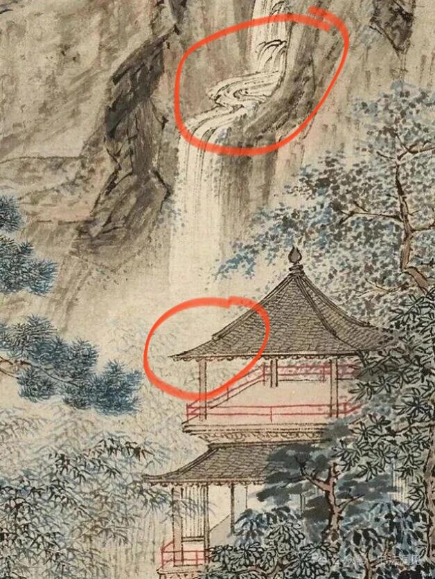 庞莱臣收藏并捐赠给南京博物院仇英画的《江南春》绝对是仿品。今天再观此画,发现了几个细节部分,小编总感觉不符合常理,或画家没找好比例! 一是建筑楼阁的飞檐与山脊处理上少了一截。下半部分没有画出。 二是扫地的人物扫地腰弯的幅度太大,这样扫地太累,日常生活中是见不到的。 三是大门的门缝画的太靠右,不符合比例。大门上没有画门环,在古代是没有这种门的。 四是瀑布画的极为别扭,曲度不合常理。 大家以为呢?