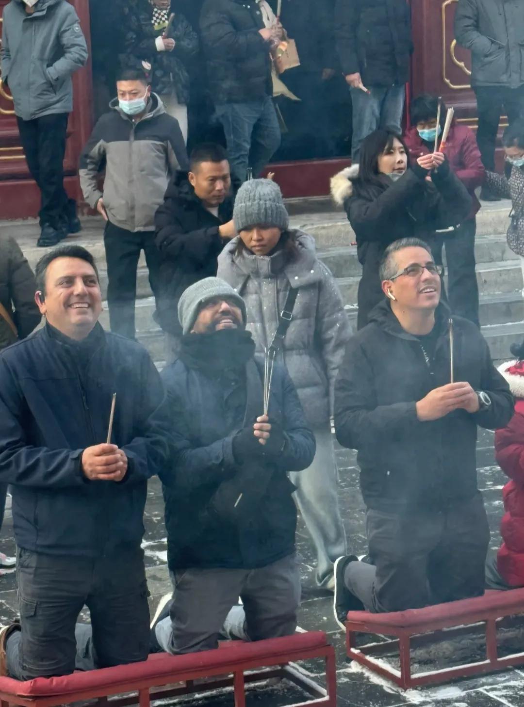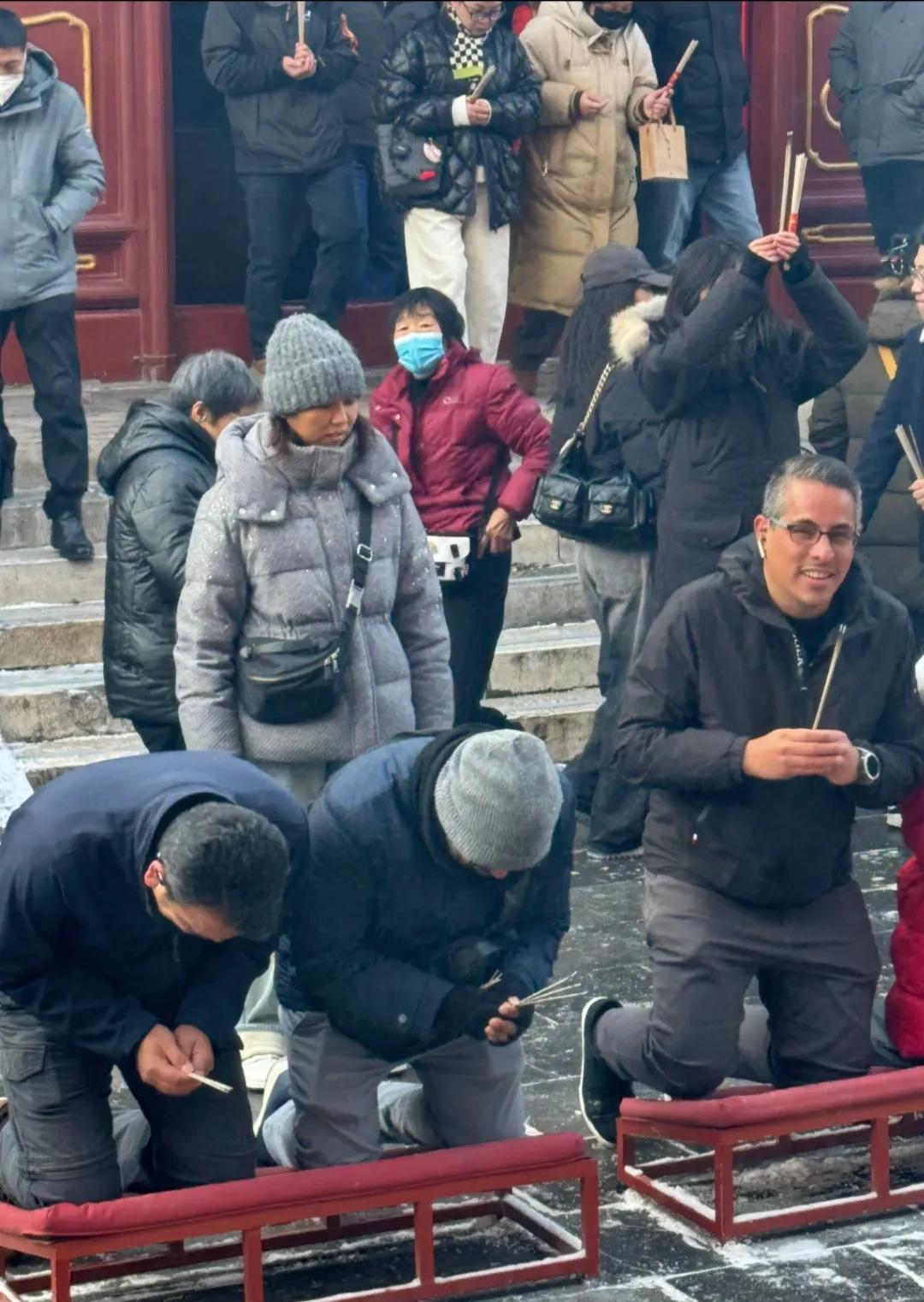雍和宫的外国人…… 我真的要被哥儿几个笑死!穿的超级单薄,冻得呲哈呲哈的!但拜佛