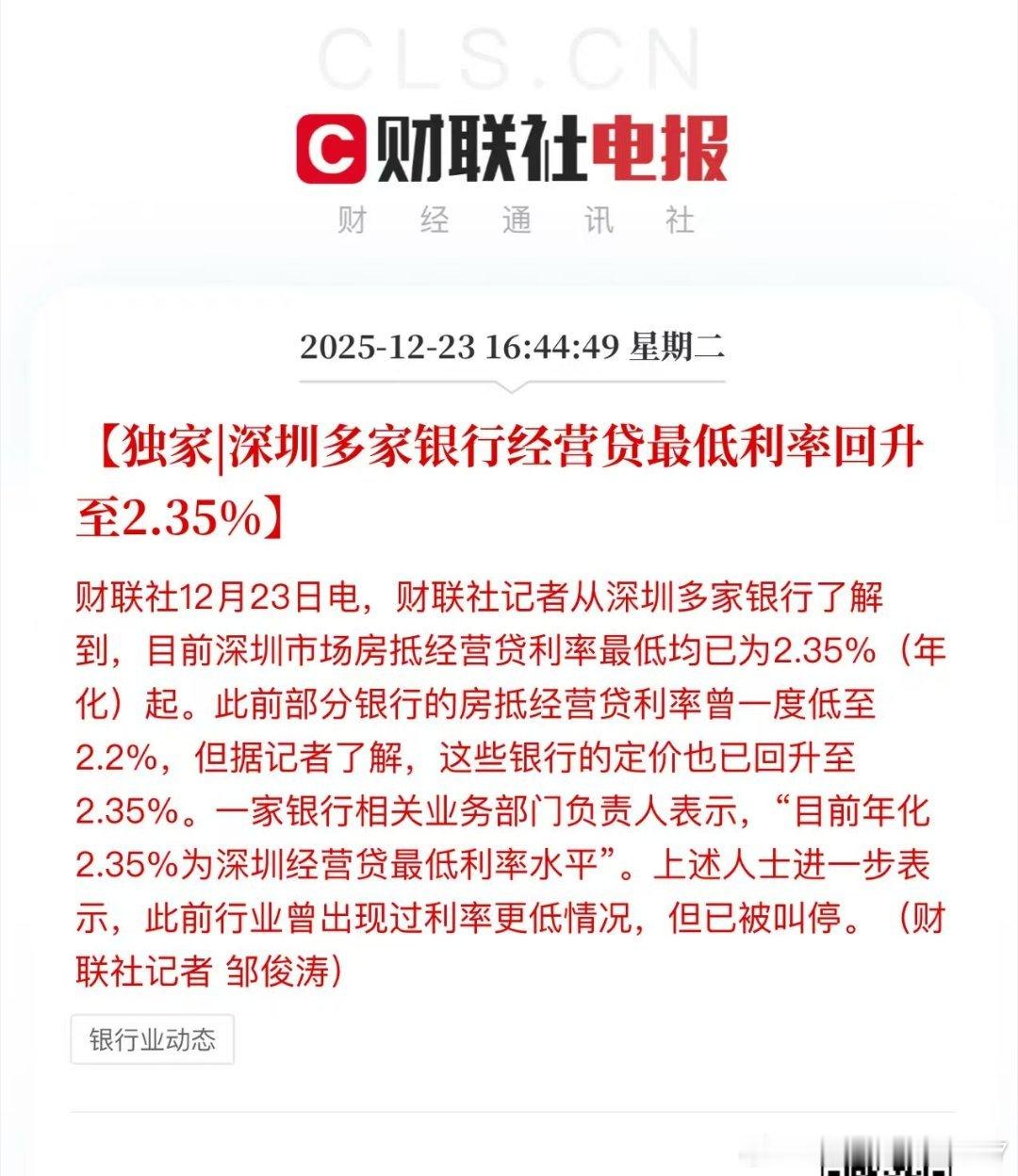 深圳多家银行经营贷最低利率回升至2.35%一边降息一边利率回升??