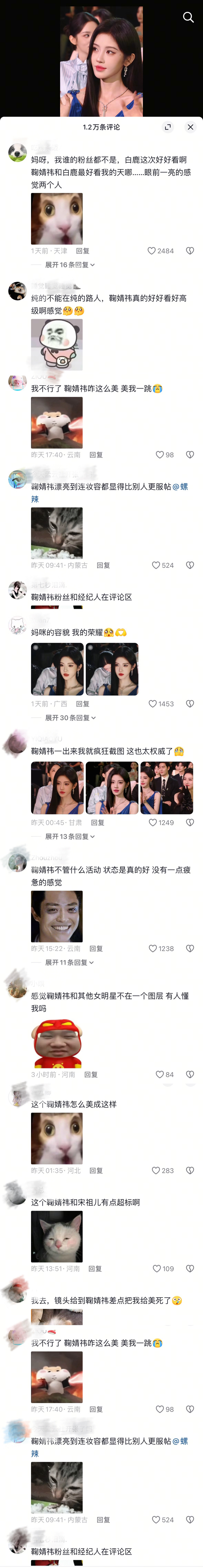 鞠婧祎在抖手的路人缘太恐怖了,星光大赏几个女明星怼脸镜头对比,评论区清一色全是在