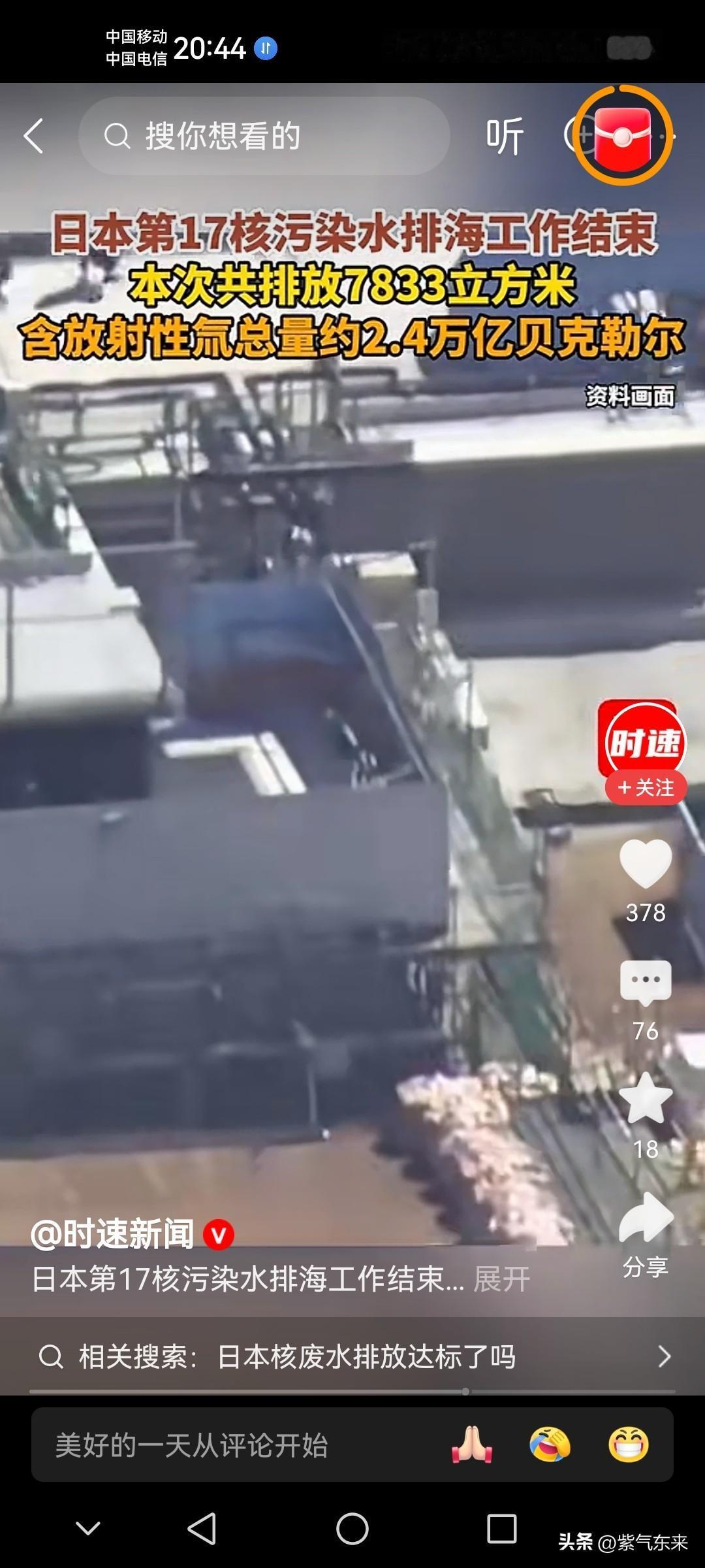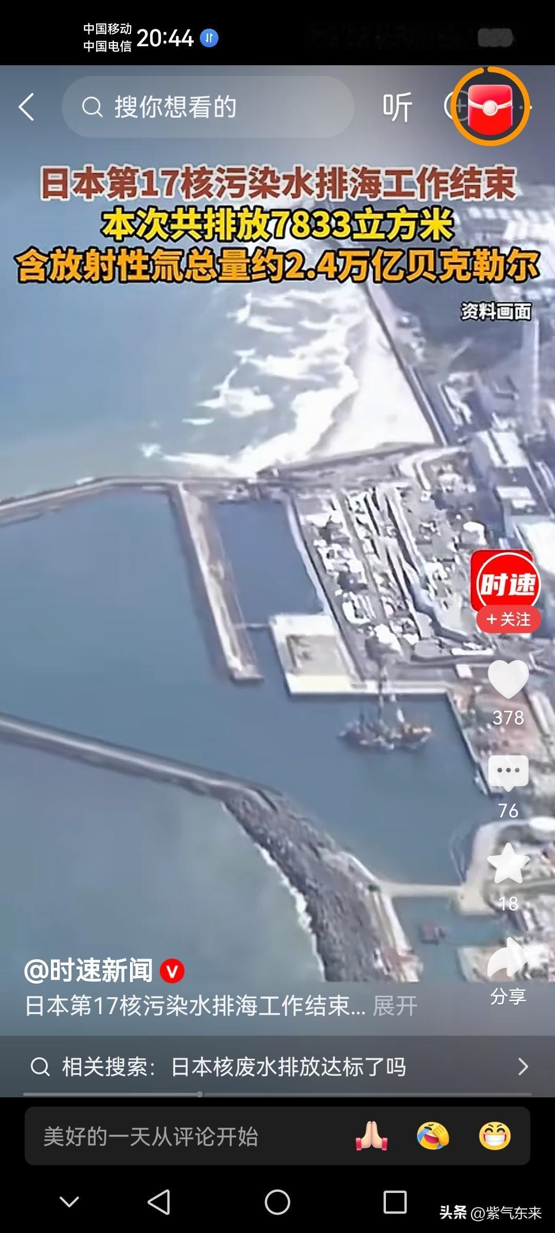 这日本一看就是没安好心! 还是中国政府明智,前段时间暂停从日本进口水产品,这个措施可谓是太正确了,太有眼光了! 日本媒体报道:日本正在报废施工的核反应堆“普贤”发生含放射性的水泄漏事件,可能有人遭辐射! 无独有偶日本第17核污水排海工作结束,本次共排放7833立方米!含放射性氚(chuan)总量约2.4万亿贝克勒尔! 日本的行为真是遭全世界措施,海洋是全人类的不是你日本的,日本这样肆意妄为的行为必定会遭到全世界的唾弃! 也让全世界看到日本的丑恶行径!日本排放核污水 日本核污水海鲜