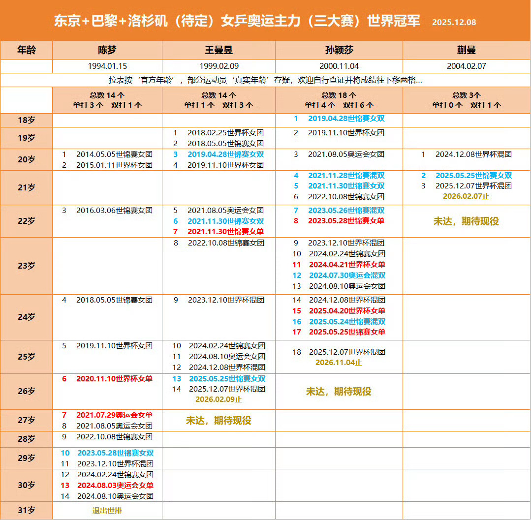 段翔说孙颖莎王曼昱水平差不多 孙颖莎这实绩太服气了女乒历史首位且唯一一位双圈金满