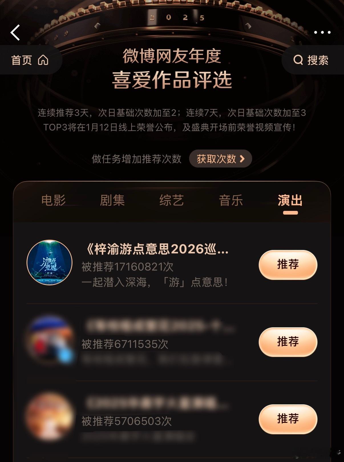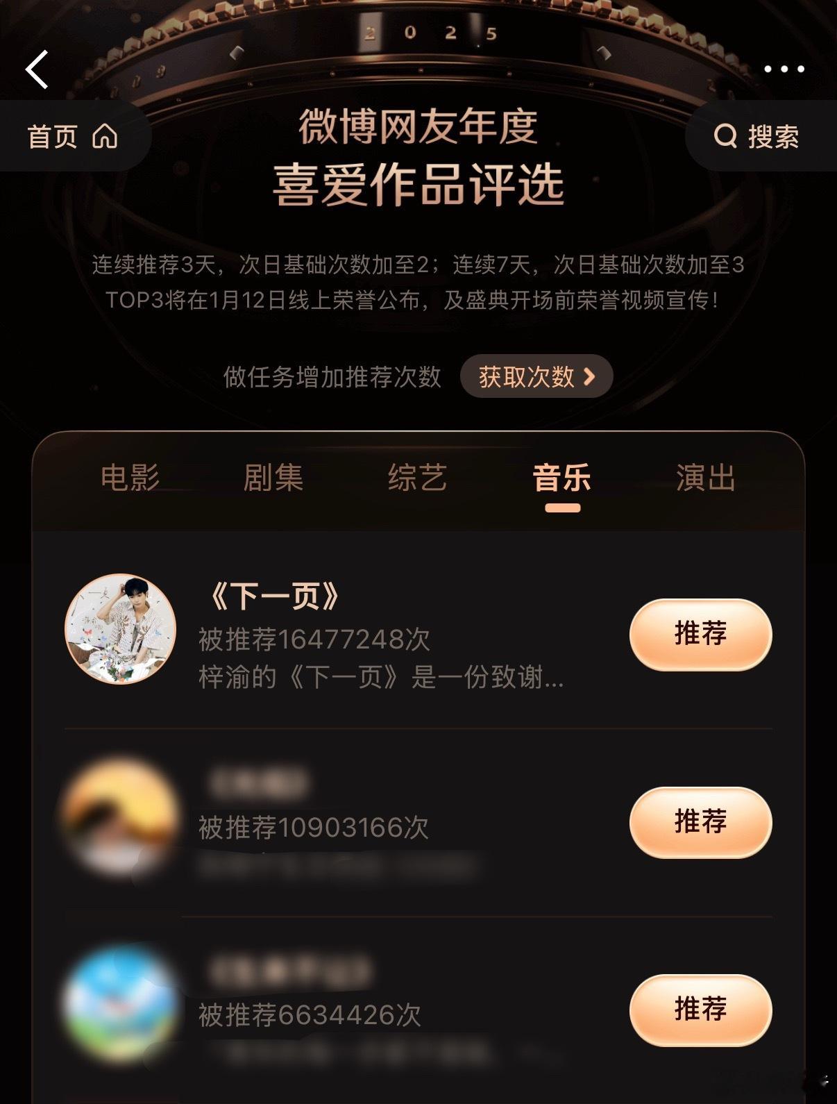 梓渝微博之夜投票 梓渝霸榜了属于是!各大榜单都第一☝🏻,不愧是顶流,活粉太多!接下来还有新商务、跨年演唱会
