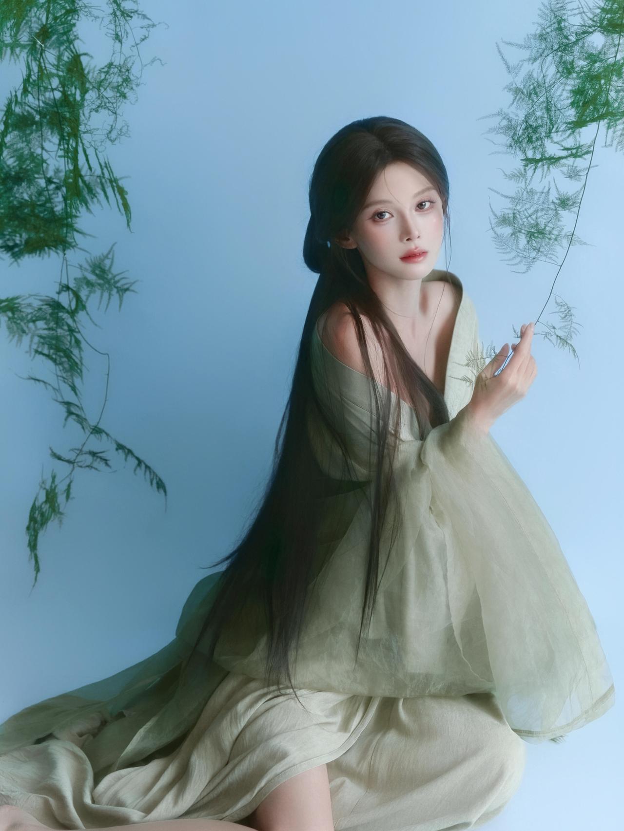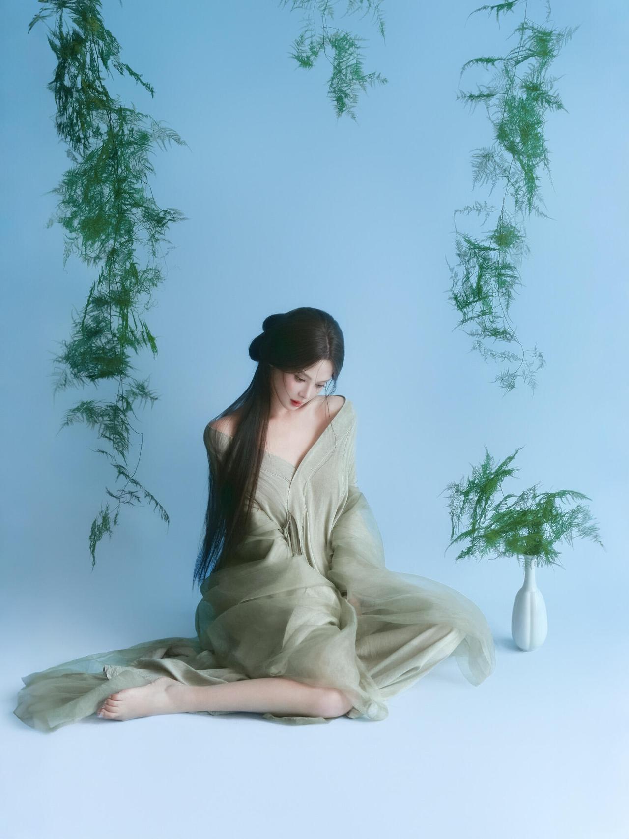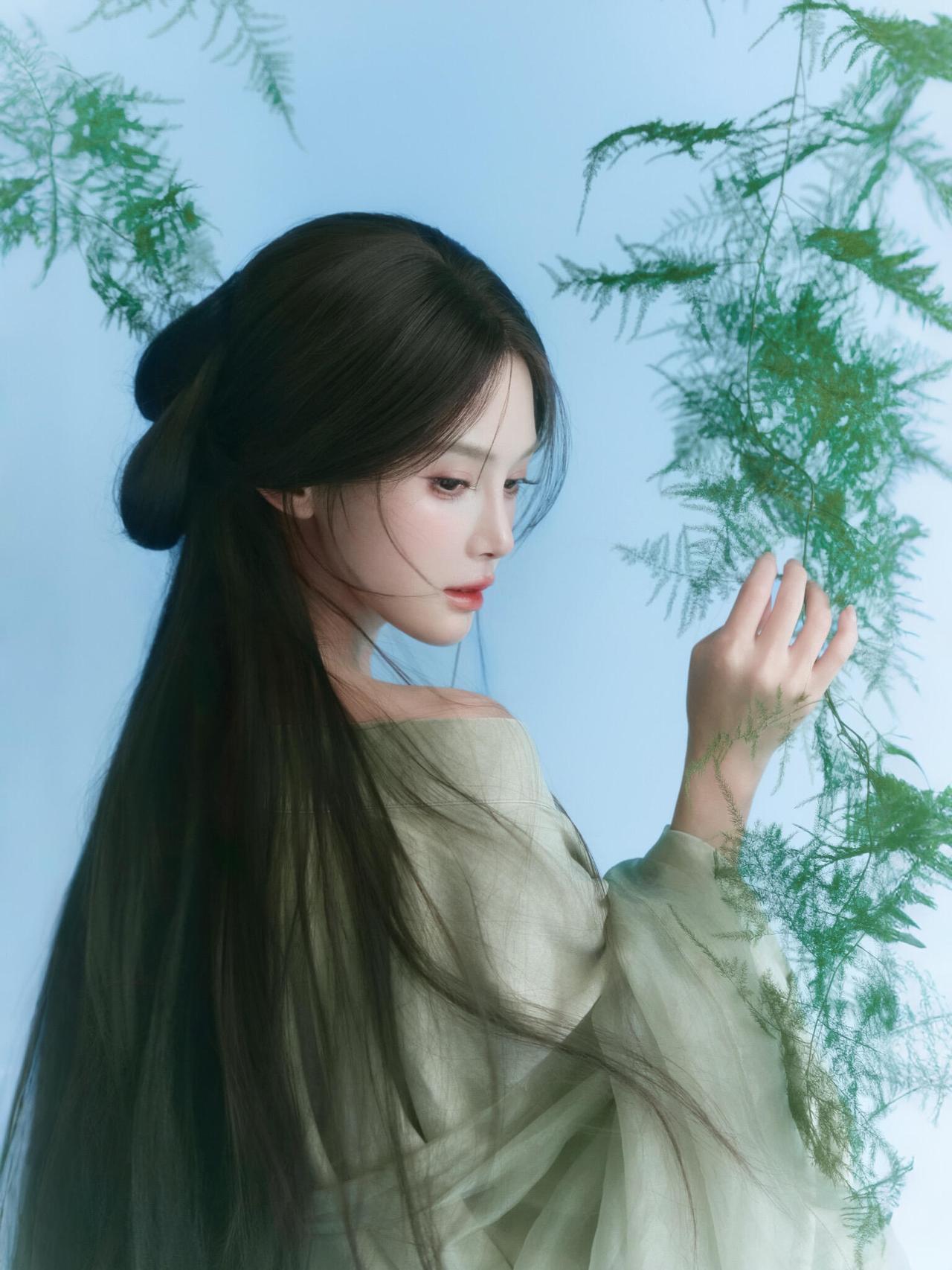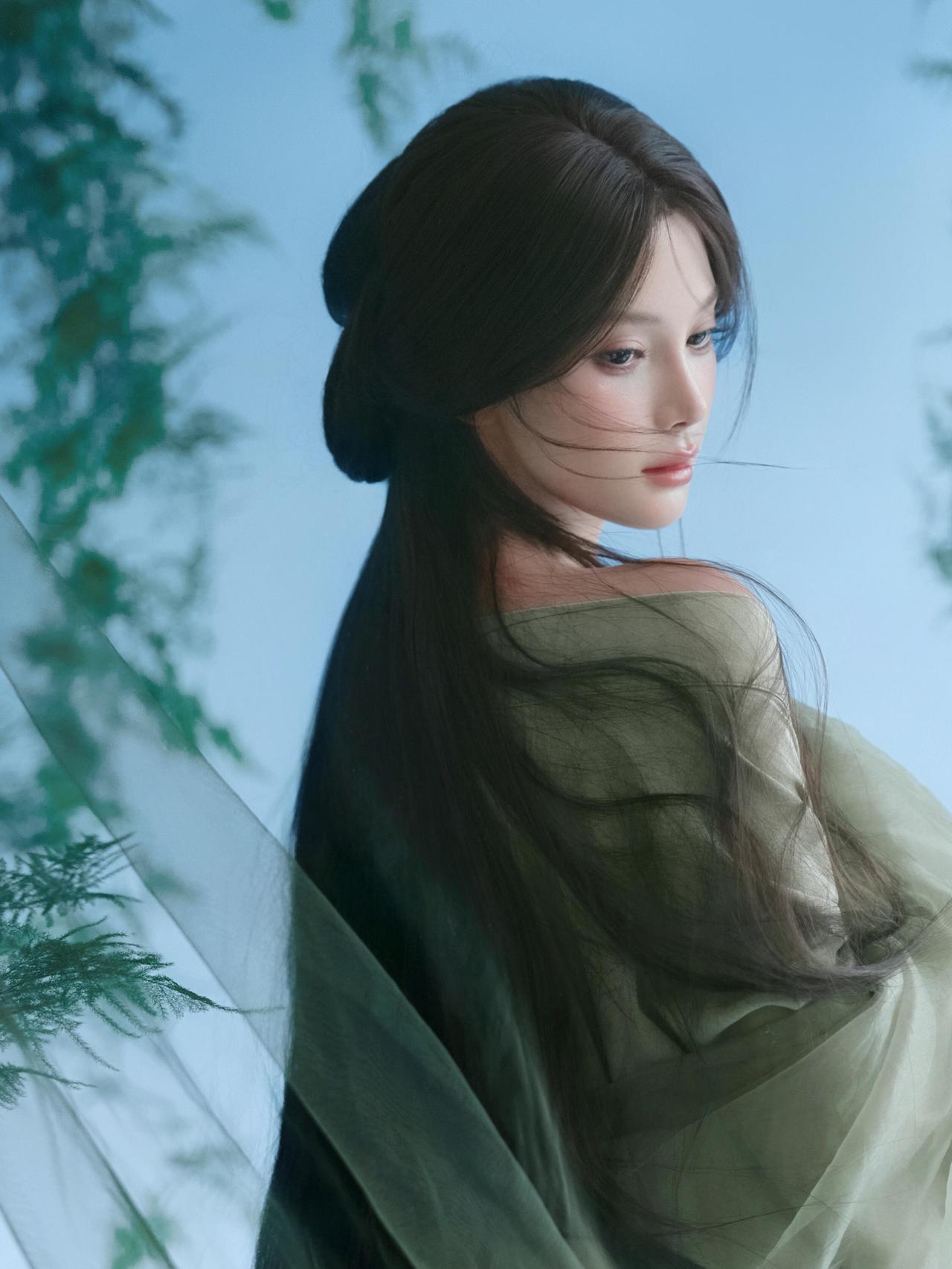 这组清冷唯美人像作品以浅蓝与青绿色系构建视觉基底,色彩的低饱和度处理让画面脱离了艳丽的视觉冲击,转而形成柔和的清冷氛围。背景的浅蓝并非单一色块,而是通过光影的微妙渐变呈现出层次感,与人物身着的青绿色纱质服饰形成冷暖的弱对比,既保留了色彩的区分度,又避免了视觉冲突,让清冷的情绪在色彩交融中自然流露。晒图笔记大赛 光影运用上,采用了柔和的散射光,没有强烈的明暗交界线,人物面部的光影过渡自然,弱化了骨骼的硬朗感,强化了柔美特质。发丝边缘的轮廓光虽淡,却精准勾勒出人物的线条,使其从背景中凸显出来,同时不破坏整体的朦胧感。道具方面,垂坠的绿藤以线条形式分布在画面中,与人物的发丝、纱衣的褶皱形成视觉呼应,绿植的生机与清冷的色调碰撞,让画面在静谧中多了一丝鲜活的张力。 构图上的竖幅拉伸让人物身形更显修长,人物姿态的松弛感则消解了构图的规整感,侧身回眸、垂眸静坐的动作,让人物的情绪表达更具叙事性,观者能从肢体语言中感受到清冷背后的温婉与沉静。美中不足的是,部分画面中绿植的分布稍显密集,一定程度上分散了对人物面部情绪的关注,若做适当删减,画面的简洁度与主体的突出性会进一步提升。