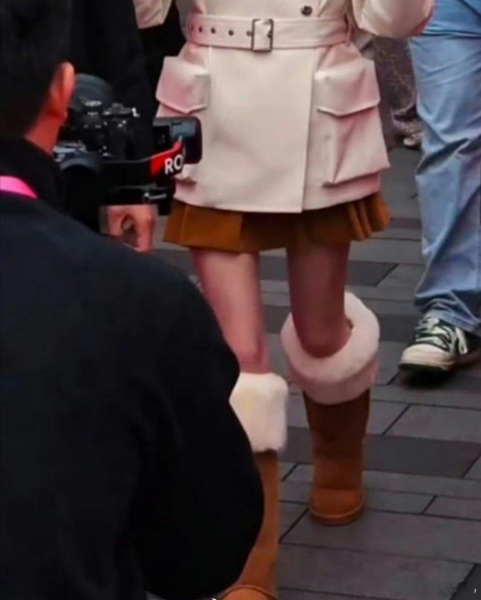 陈都灵今日份妆造穿着毛绒绒的雪地靴,找不到跟p3不一样的地方
