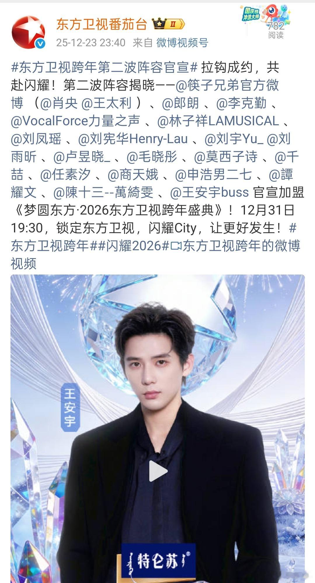 东方跨年第二波阵容官宣,刘宪华也去东方跨年!!!还有王安宇和龚俊,卢昱晓陈都灵等
