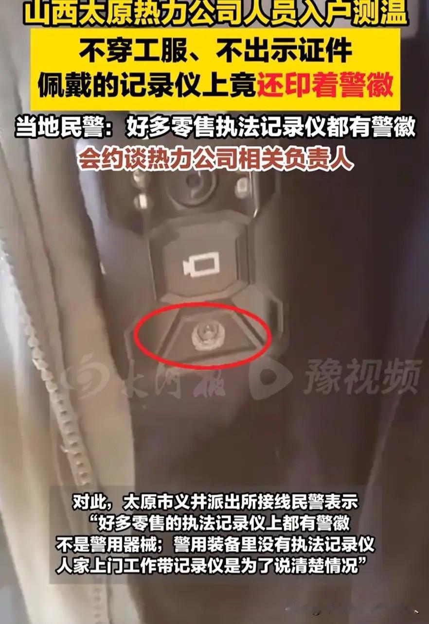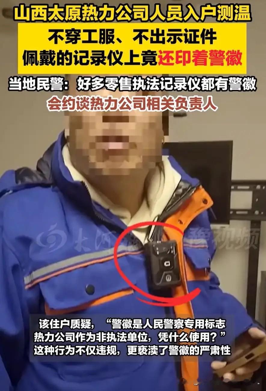热力公司测温耍猫腻?带警徽记录仪更离谱! 太原一男子家供暖室温不足18℃,按规定投诉热力公司。 没几天四五个人上门测温,却没穿工服、没亮证件,专挑中午最暖和的时候直奔阳面房间,测出20℃就让签字。男子当场质疑:专挑热屋子测,能算真实温度?阴面冷房咋不测? 争执时,男子发现工作人员的记录仪竟印着警徽!热力公司是企业,又不是执法部门,咋能用带警徽的设备? 这事发到网上,网友纷纷吐槽同款经历,直言这种测温就是糊弄事,警用设备乱用更让人费解。 个人看法:供暖是民生大事,测温得守规矩。穿工服、亮证件,全屋随机测、不同时段测,才能让人信服。警用标识和设备有严格使用规范,绝不能随意挪用,这既关乎公信力,更关乎民生信任。 好在当地警方已回应约谈负责人,希望能查清原委,给百姓一个明确说法,让供暖真正暖身又暖心!