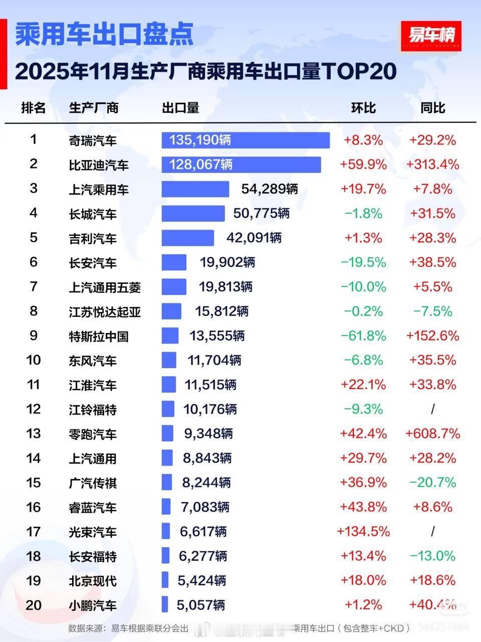 2025年比亚迪出海战绩太炸裂了,多国销冠全面超越!11月单月出口量同比激增313.4%,达到12.8万台,前11个月累计出口87.8万台,直接比去年翻倍还多。在巴西、土耳其、意大利这些国家,比亚迪新能源车卖得比特斯拉还好,新加坡和中国香港更是拿下全品牌销量第一。这背后是精准的产品布局和自建滚装船、本地化生产这些硬核策略在发力。作为首家新能源车下线超1500万辆的车企,比亚迪正带着中国汽车从跟随者变成全球出行变革的引领者,这波全球领跑实至名归了!