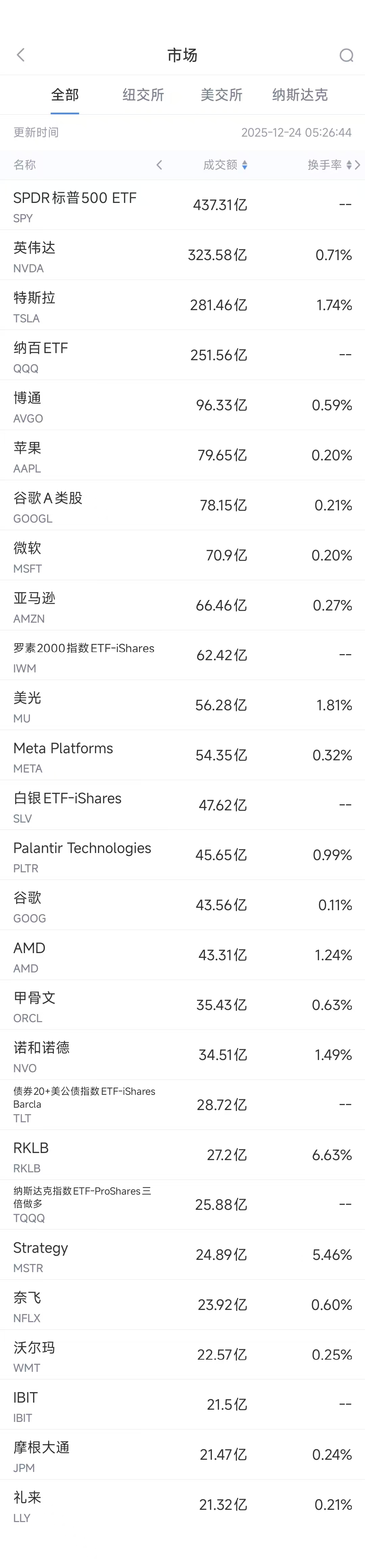 第2名特斯拉收跌0.65%,成交281.46亿美元。著名投资者凯西伍德及其旗下方舟投资公司持续减持特斯拉股票套现,而特斯拉股价于周一再创历史新高。目前特斯拉仍处于买入区间,但分析师已下调其四季度汽车交付量预期。根据方舟投资旗下交易所交易基金(ETF)的每日交易披露文件,伍德旗下的方舟创新ETF、方舟下一代互联网ETF以及方舟自动驾驶技术ETF在周一合计抛售60715股特斯拉股票,预估套现2967万美元。特斯拉仍是伍德及方舟投资旗下ETF的重仓股。