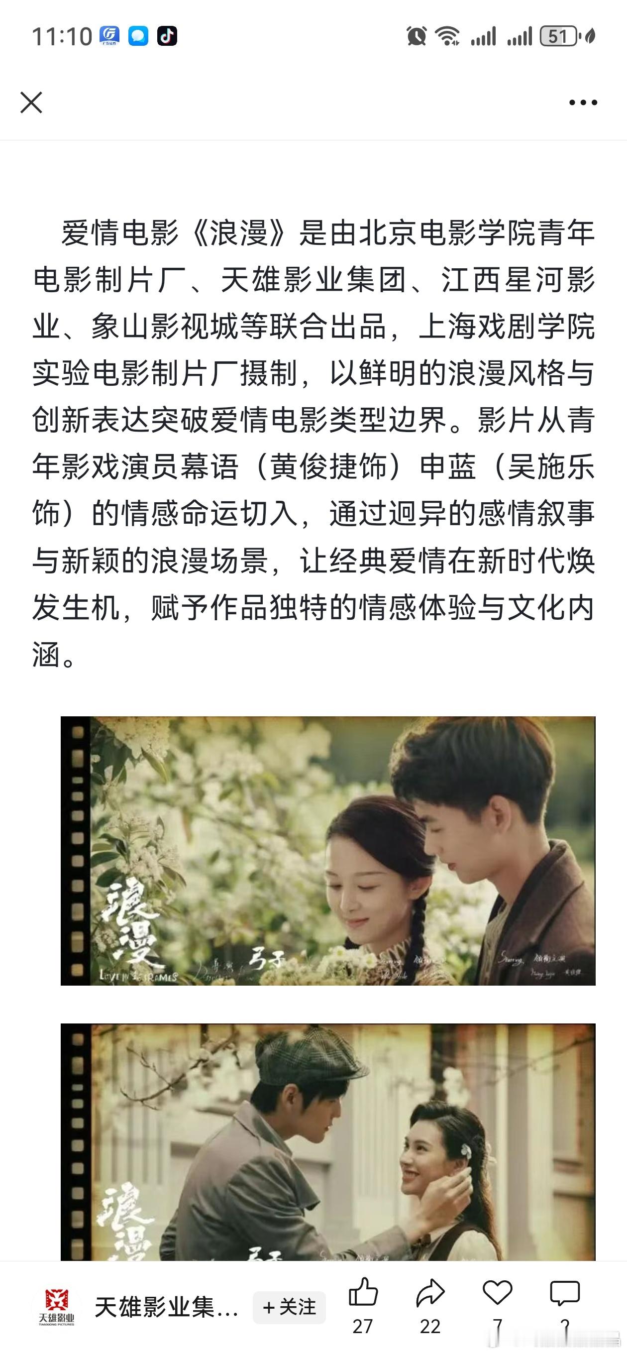 吴施乐和黄俊捷主演的电影《浪漫》在中美国际电影节拿了最佳新晋编剧大奖,还入围了第