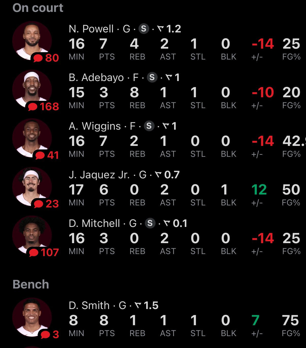 半场44分,这是迈阿密热火本赛季上半场得分最低的一次。德鲁·史密斯半场就成为我们