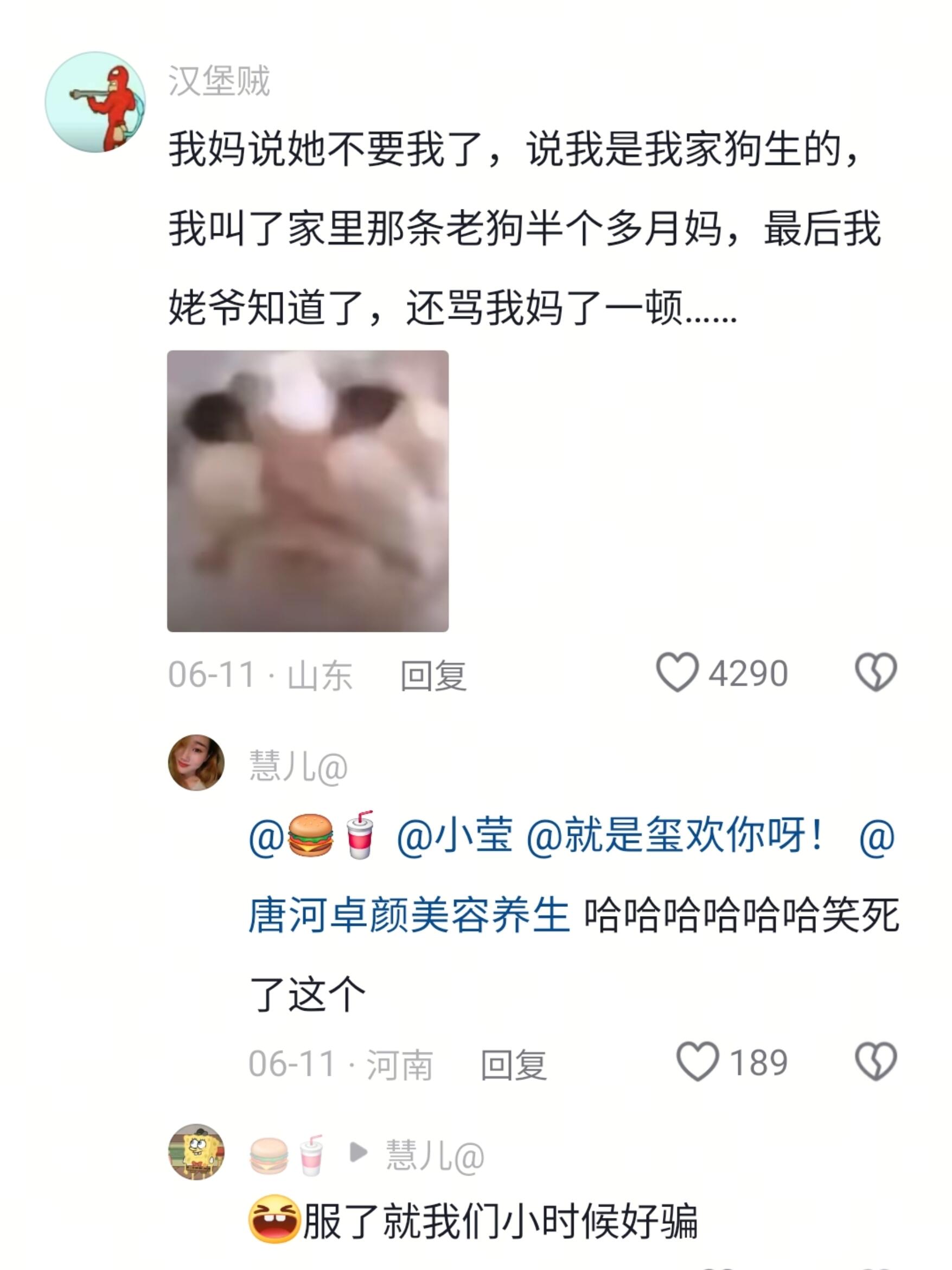 我妈说她不要我了,说我是我家狗生的,我叫了家里那条老狗半个多月妈,最后我姥爷知道了,还骂我妈了一顿.......