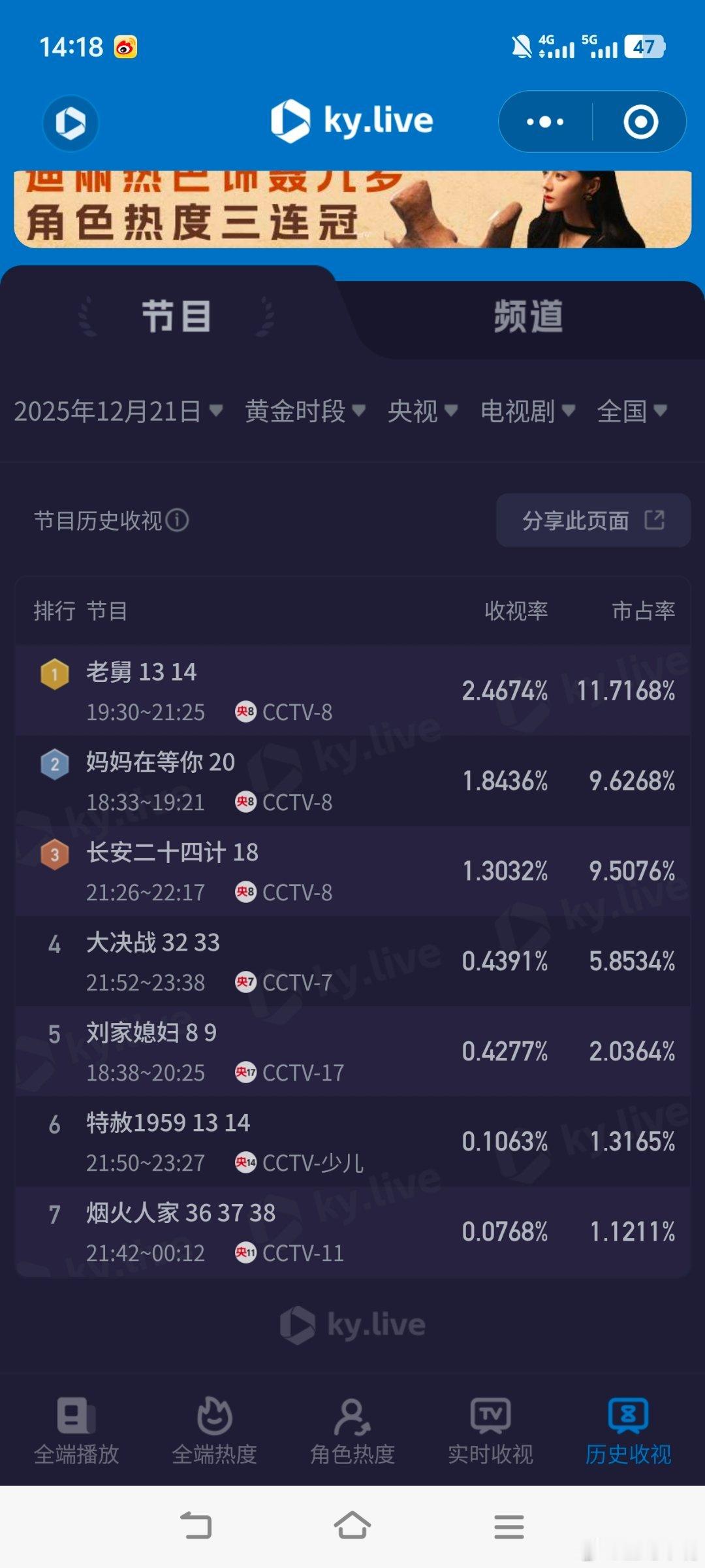 12月21日cvb收视日报!来了来了!老舅 2.111,酷云2.4674,系数0.8555长安二十四1.231,酷云1.3032,系数0.944新一年又一年0.378,酷云0.3856,系数0.980狙击蝴蝶0.369,酷云0.4102,系数0.899