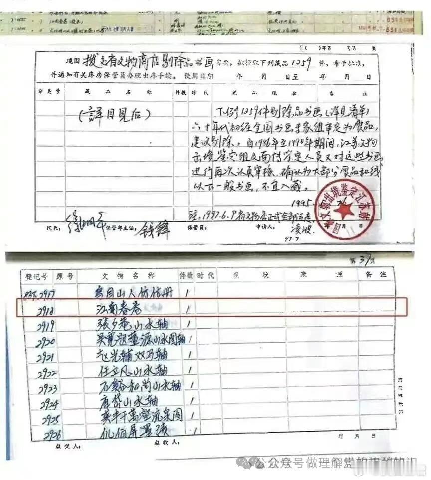 南京博物院事件,真相在哪里?最近,南京博物院曝出惊天大瓜。著名收藏家庞莱臣的曾孙女庞叔令,把这家文博机构推上了舆论的风口浪尖。她发现,他们家捐给南京博物院的5件珍贵画作居然“凭空消失”了。消失的文物分别是:仇英的《江南春》图卷、赵光辅的《双马图轴》、王绂的《松风萧寺图轴》、王时敏的《仿北苑山水轴》和汤贻汾的《设色山水轴》。几经寻访,庞家人得知《江南春》今年五月出现在某拍卖会的预展上,起拍价8800万。他们预感事情很不简单,于是向国家文物部门举报此事。拍卖公司随即撤拍。(相关新闻报道)事件发酵之后,各家媒体持续跟进。很快,南京博物院给出了回应。他们说:博物院确实收到过庞家人捐赠的137幅画作。消失的5幅画作,在上世纪60年代,由专家鉴定为伪作。所以在上世纪90年代,院方就根据《博物馆藏品管理办法》,对5幅画作进行了处置。目前,他们不清楚画作的去向,也不知道拍卖市场出现的《江南春》图卷是否为受赠画作。昨天,南博典藏部退休老职工郭礼典郭老举着自己的证件,实名举报南博前院长徐湖平的事,登上了各大平台的热搜。举报的内容主要有以下几条:其一,南京朝天宫库房内存放的故宫南迁文物共2211箱、10万余件,徐湖平任内擅自撕毁封条,取出大量文物。其二,指使鉴定专家将部分真品定为赝品,低价卖入自己主管的江苏省文物商店,再转手至其子徐湘江在上海经营的拍卖公司,最终流向法国商人与各地文物贩子,牟取暴利。其三,自2008年起,40多名员工集体联名举报多次,均因行贿对象较多、势力强大而石沉大海。《江南春》原收藏者庞莱臣的曾孙女庞叔令,近日在接受财新传媒专访时明确表示:徐湖平既是《江南春》文物划拨的审批者,又是江苏省文物总店的法定代表人,还是江苏省收藏协会会长,和收藏拍卖市场关系密切。这种既是裁判又是运动员,“左手倒右手”的方式很让人怀疑。呼吁国家有关部门对此事进行彻查,相关责任人应该承担法律责任。庞莱臣是晚清民国时期著名收藏家。1959年,庞莱臣之孙庞增和携家人向南京博物院无偿捐赠庞莱臣“虚斋旧藏古画”137件(套)。南京博物院后向庞增和先生出具了《捐赠文物资料收据》,及捐赠“虚斋旧藏古画”137件(套)清册等捐赠证明。其中,就包括仇英《江南春》图卷。庞增和之女庞叔令在接受媒体采访时表示,她的曾祖父庞莱臣为近现代中国著名的收藏家。庞家多次捐赠的文物现存于故宫博物院、南京博物院、上海博物馆、苏州博物馆,并有不少文物为各家博物馆镇馆之宝。“我父亲与我于1959年向南京博物院捐赠的文物,都是珍品,不存在伪作,但南京博物院擅自认定五件藏品系伪作的行为,严重损害了我曾祖父及父亲的声誉。”南博向新华社记者出示了专家鉴定记录及有关流程证据:第一次是1961年11月,原文化部组织以张珩(张葱玉)为主的全国书画鉴定专家组到南博进行书画鉴定,张珩、韩慎先、谢稚柳三位专家鉴定后认为:“江南春图卷,伪,一般,陈鎏题引首真,后面题跋完全不对,伪做得很好,原庞家是当真的藏的”。第二次是1964年6月,王敦化、徐沄秋、许莘农三位专家再次鉴定,认为“仇英江南春图卷,假”。△1961年11月,张珩、韩慎先、谢稚柳三位专家鉴定后意见:“江南春图卷,伪,一般,陈鎏题引首真,后面题跋完全不对,伪做得很好,原庞家是当真的藏的”。(受访者供图)新华社记者经采访得到了《江南春》图卷从划拨、调剂、退藏、销售的相关史料。1986年6月,原文化部制定出台《博物馆藏品管理办法》。之后,南京博物院依照此办法,由原江苏省文物出境鉴定组及南博鉴定人员对一批建议剔除的书画作品进行再次审核,确认不宜入藏。1997年4月15日,南京博物院向原江苏省文化厅提交《关于处理不够馆藏标准文物的报告》,请求“将不够馆藏标准的文物(即博物馆的处理品)进行调剂,价拨给省文物总店处理”。原江苏省文化厅于1997年4月21日同意调剂。1997年5月8日,被专家认定为赝品的《江南春》图卷拨交给原江苏省文物总店,于2001年4月16日被“顾客”以6800元价格购买,销售清单明示为《仿仇英山水卷》。12月19日晚,南京博物院前院长徐湖平告诉《正在新闻》,他今年82岁了,身体抱恙在家,由老伴照顾起居,“高血糖,前列腺也不好。”2008年退休至今,近20年不再过问外界的事,“这个事没有经我手,我不是书画鉴定家。”徐湖平表示,对于《江南春》画卷一事,还需联系南京博物院,“文化厅工作组会实事求是调查,我也确实不了解情况,以调查结果为准。”最新消息是:国家文物局对近日媒体报道的“南京博物院《江南春》图卷现身拍卖市场”等相关情况高度重视,已成立工作组并于日前赴南京开展工作。而江苏省委、省政府决定,在前期初步核查基础上,成立由纪委监委、宣传、政法、公安、文旅、文物等部门组成的调查组,对南京博物院受赠文物保管处置中存在的问题,以及其他藏品安全问题,进一步全面深入调查,并依据调查结果对违法违规问题进行严肃处理,绝不姑息。调查处理情况将及时向社会公布。反腐,已经向更深层次推进!文博系统掌握着那么多名贵的东西,到底还有什么见不得阳光的地方?我们相信,牛鬼蛇神,臭虫老鼠,难逃法网!