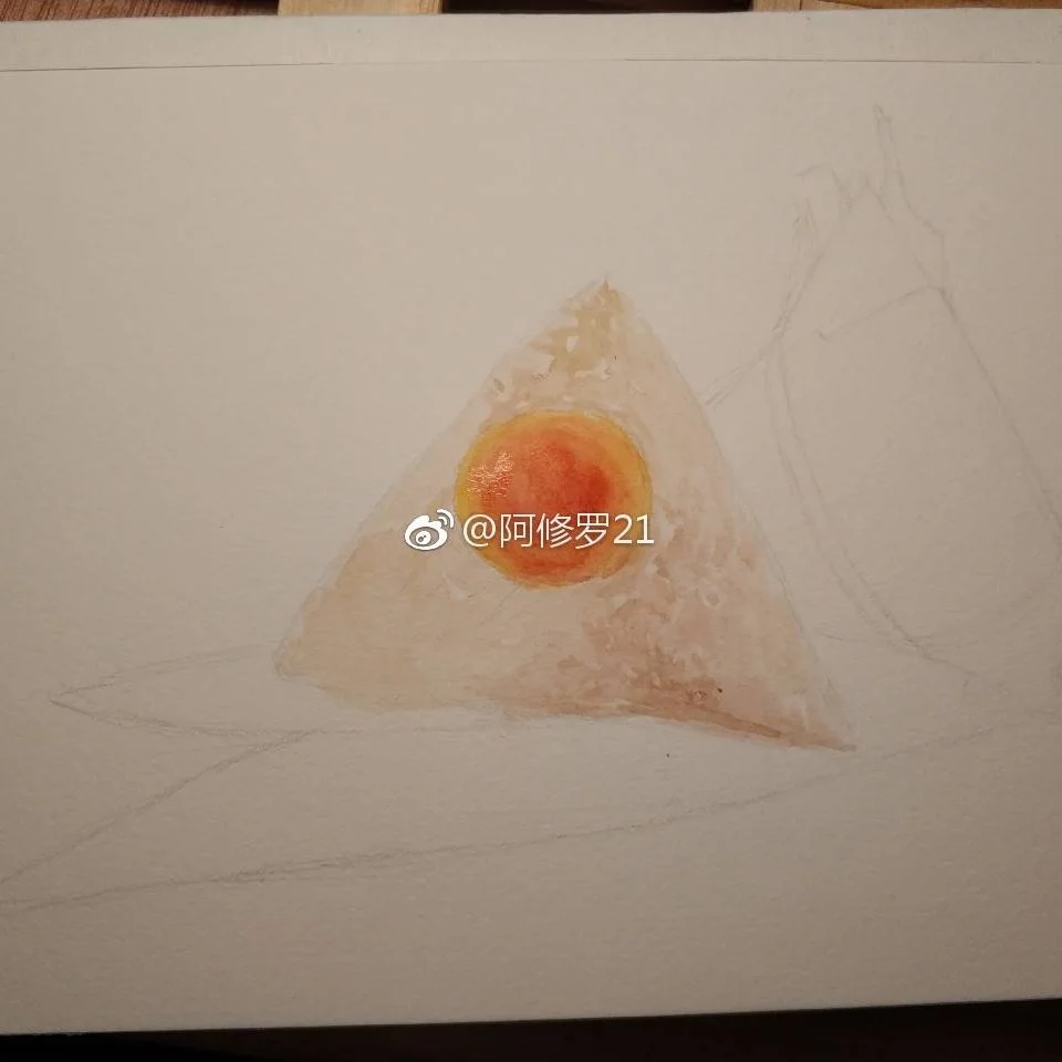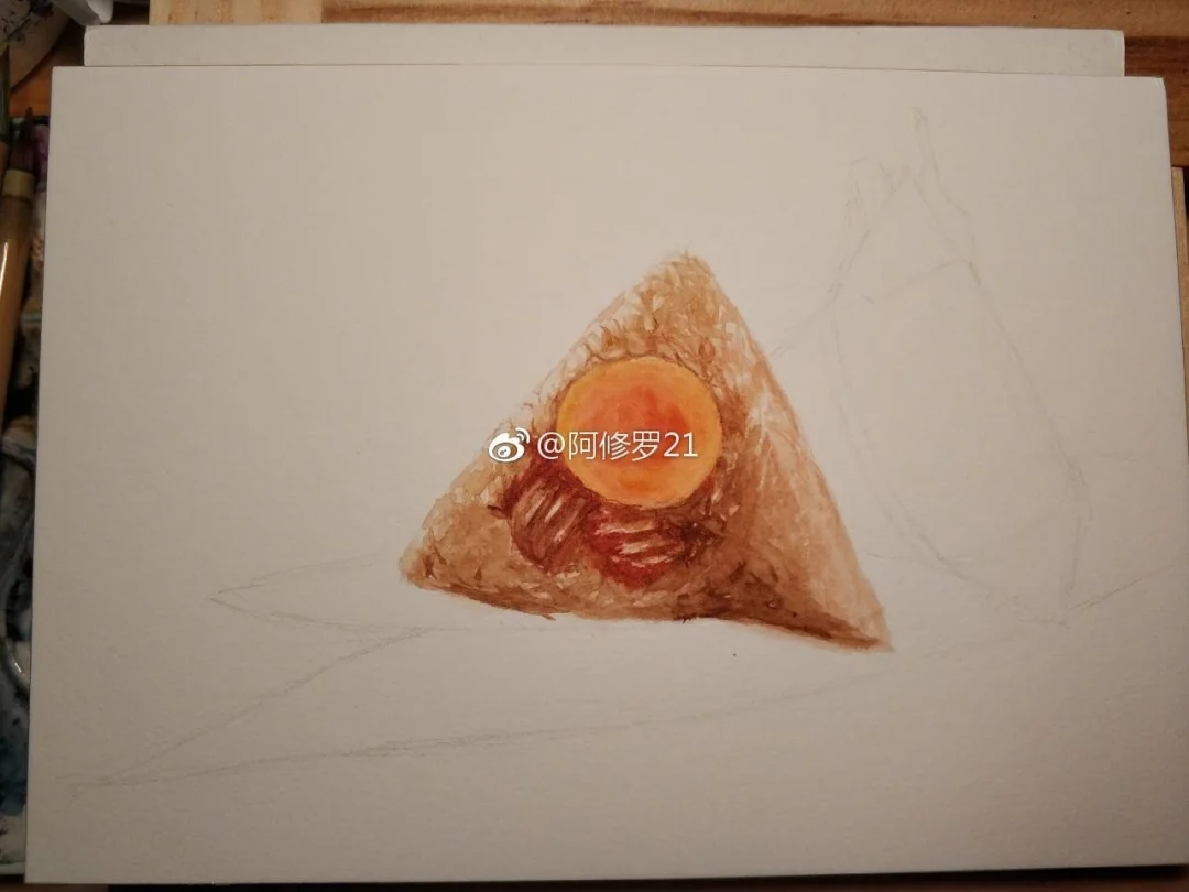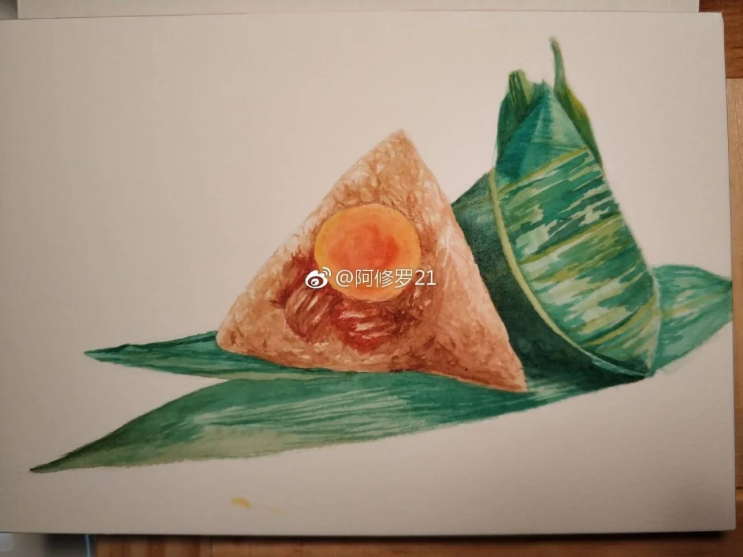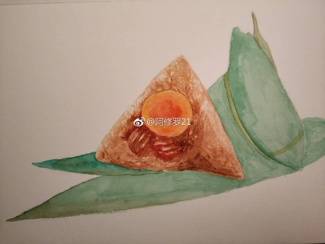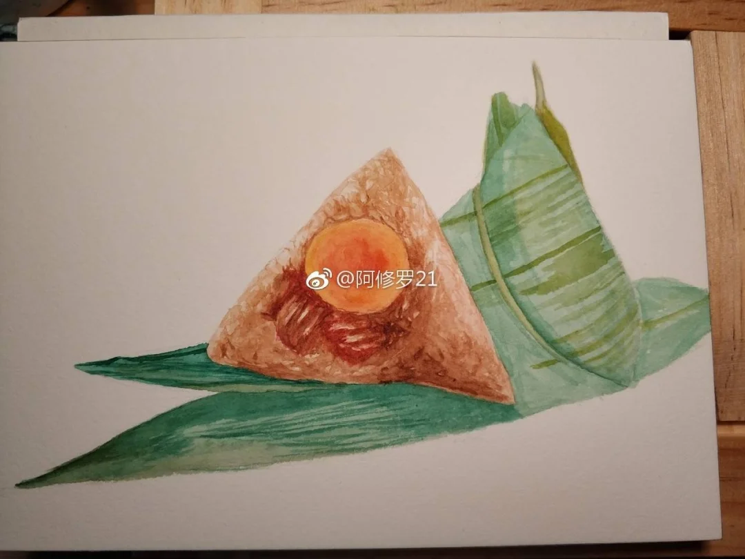 今年端午的粽子。把以前彩铅画的粽子素材拿来改改,换成我喜欢的蛋黄咸肉。