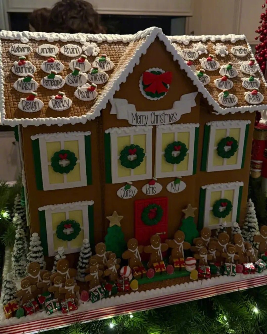 笑死😂甜茶Timothée Chalamet 获得女友凯莉 Kylie Jenner家人的“官方认可”——他被加入了卡戴珊家族延续多年的节日传统中:家族姜饼屋。