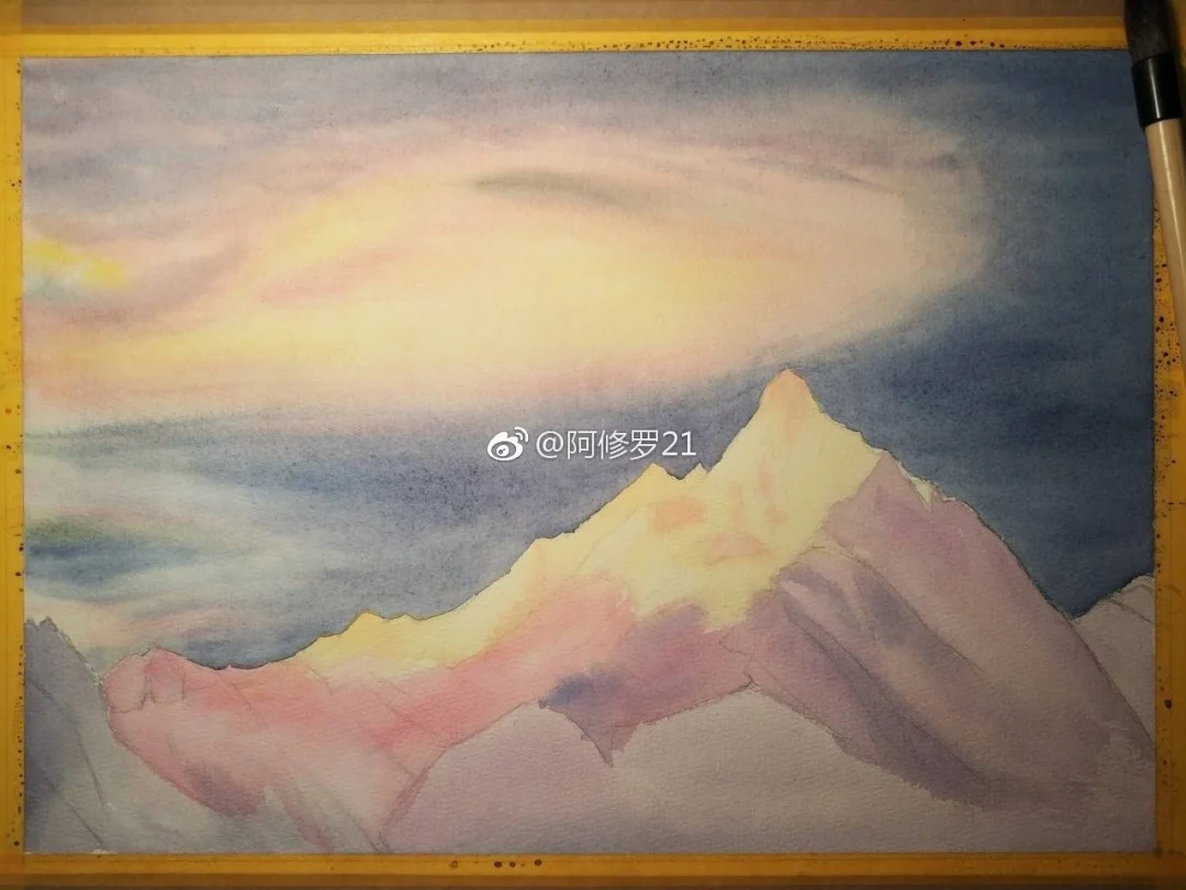 水彩,梅里雪山。云有点没弄好,山体我还是很喜欢的。