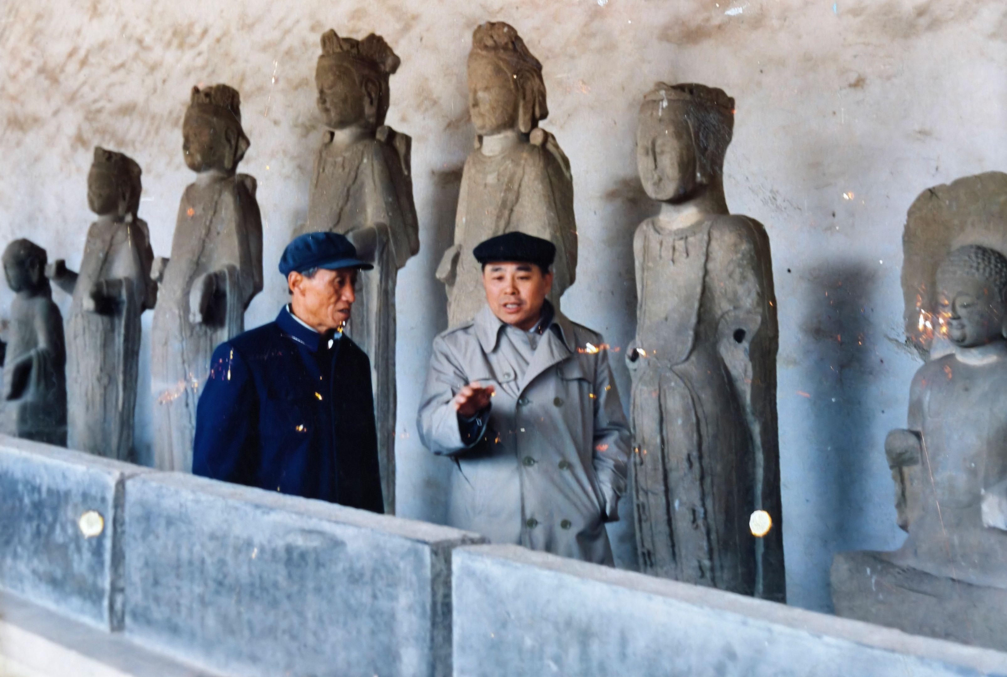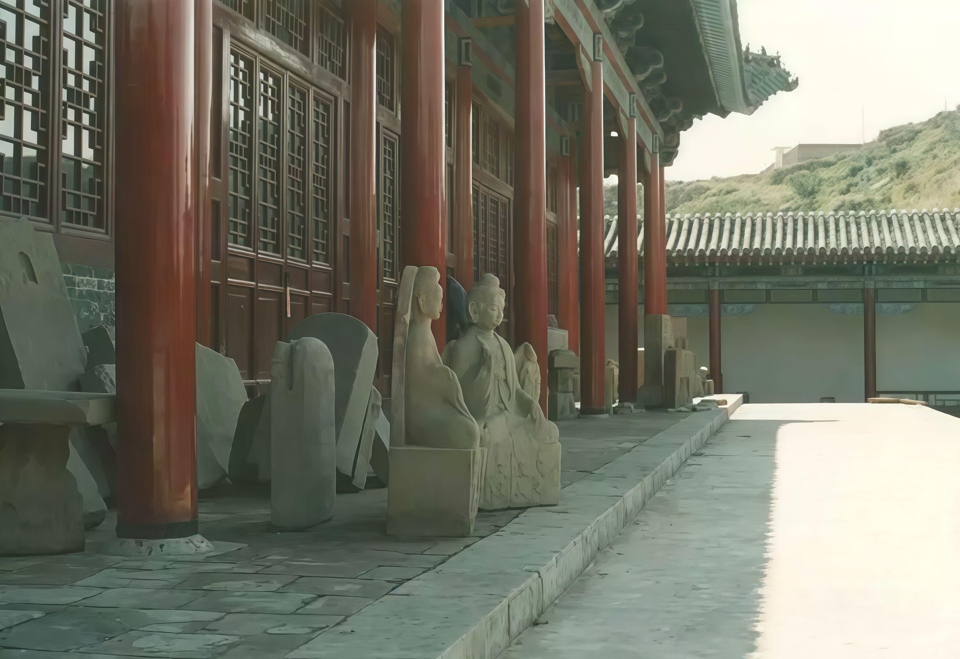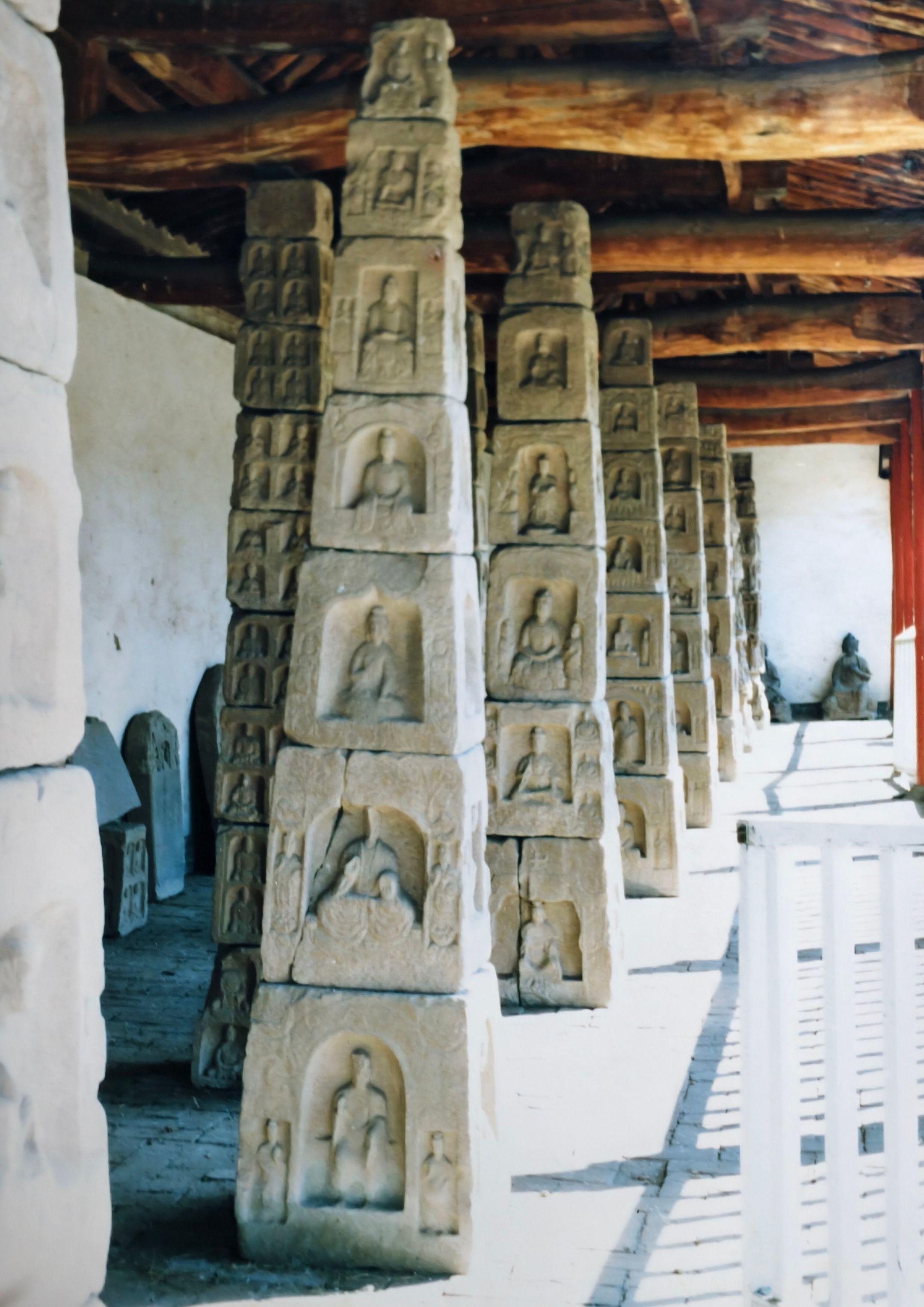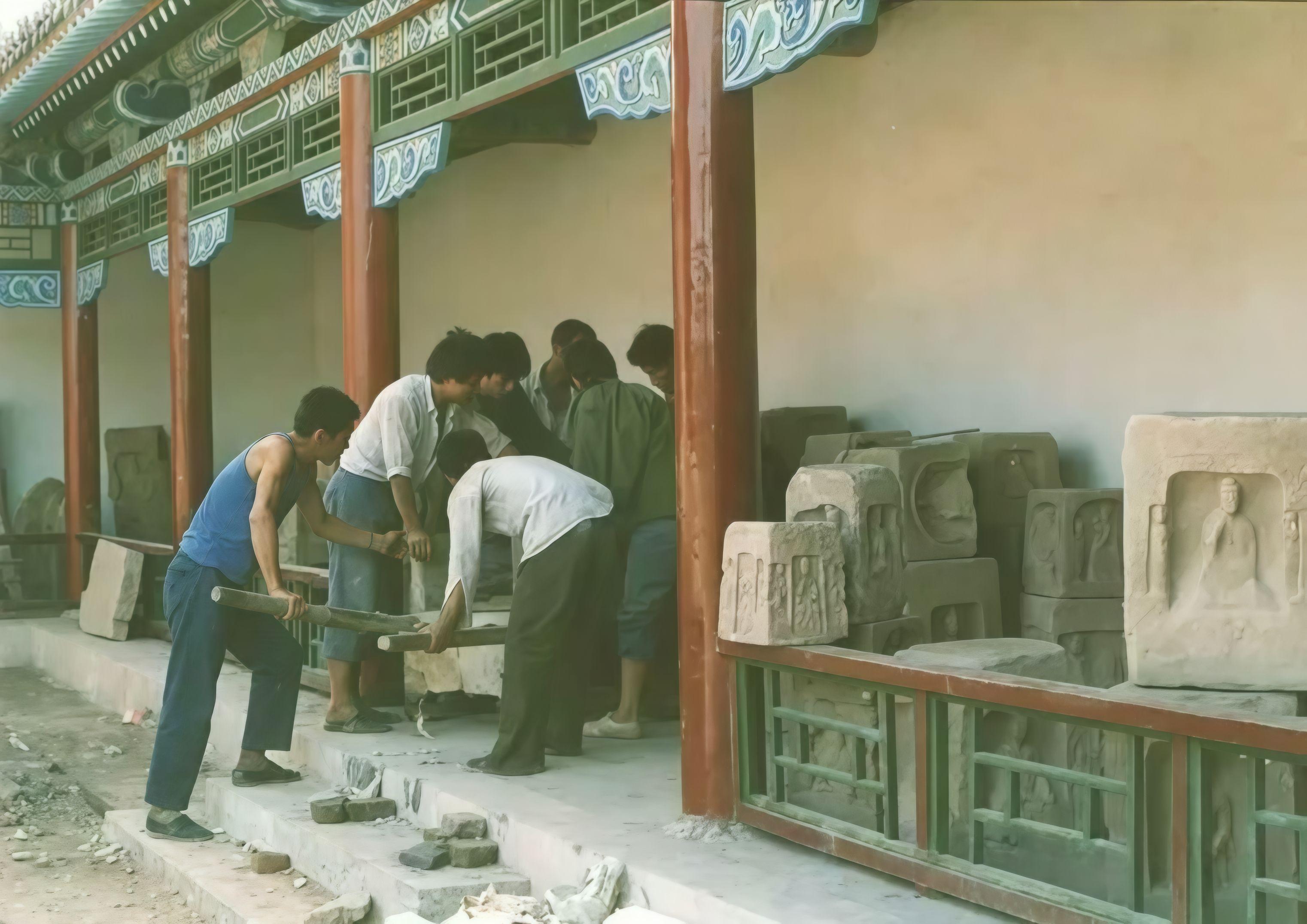 沁县旧影-南涅水石刻馆旧影。上世纪四十年代,南涅水村寡塔这个地方因为村民取土露出一些石条、瓦砾之类的,但因该地有很多蛇,人们不敢乱动石块。到1956年,坍塌加重,露出了石刻,村民张玉科向县文化馆反映了这一情况,县文化馆立即向省文管会报告。1957年秋,省文管会开始发掘南涅水村的窖藏石刻。据发掘报告记载,当时窖穴坑掩盖层基本上是碎石、残体、泥土中混杂有彩色的碎泥片,中层是密集地排列摆放的大大小小的单体像一类的石刻,最下面是一层一层成排成行的造像石,完好无损者极少。石雕夹缝中还有很多蛇。 当年文管部门从南涅水村