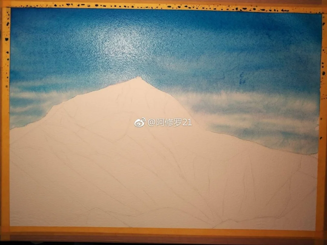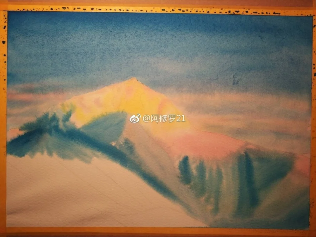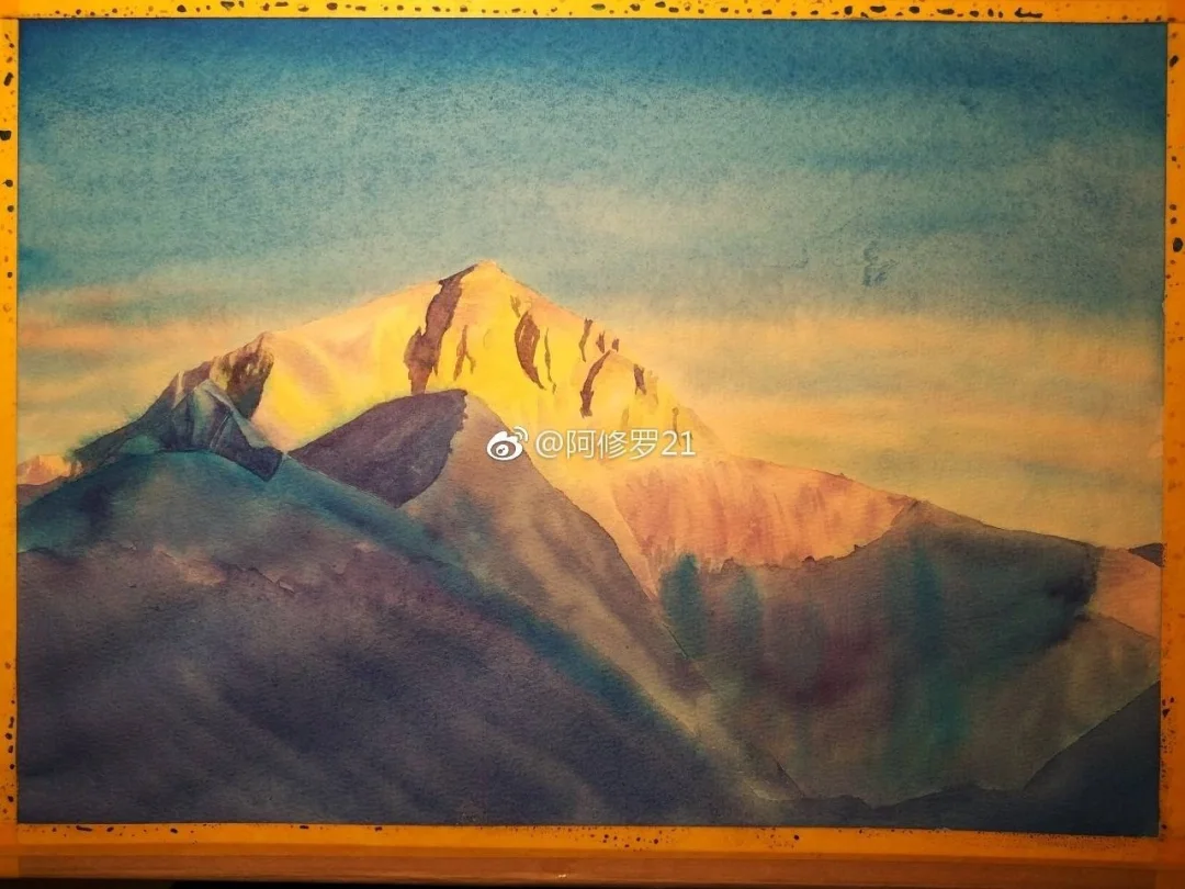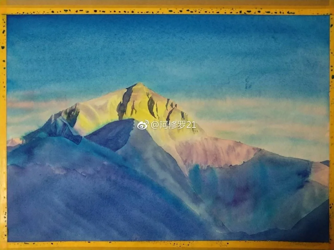 水彩,珠峰,日照金山。8k。