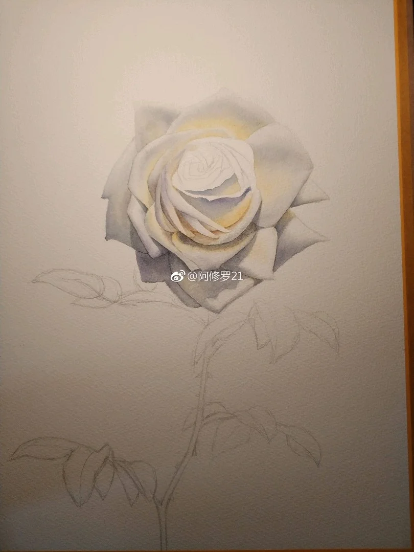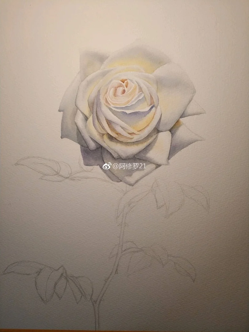 临摹黄有维老师的白玫瑰。看见白色花瓣总觉得很香,可能是联想到栀子花了。