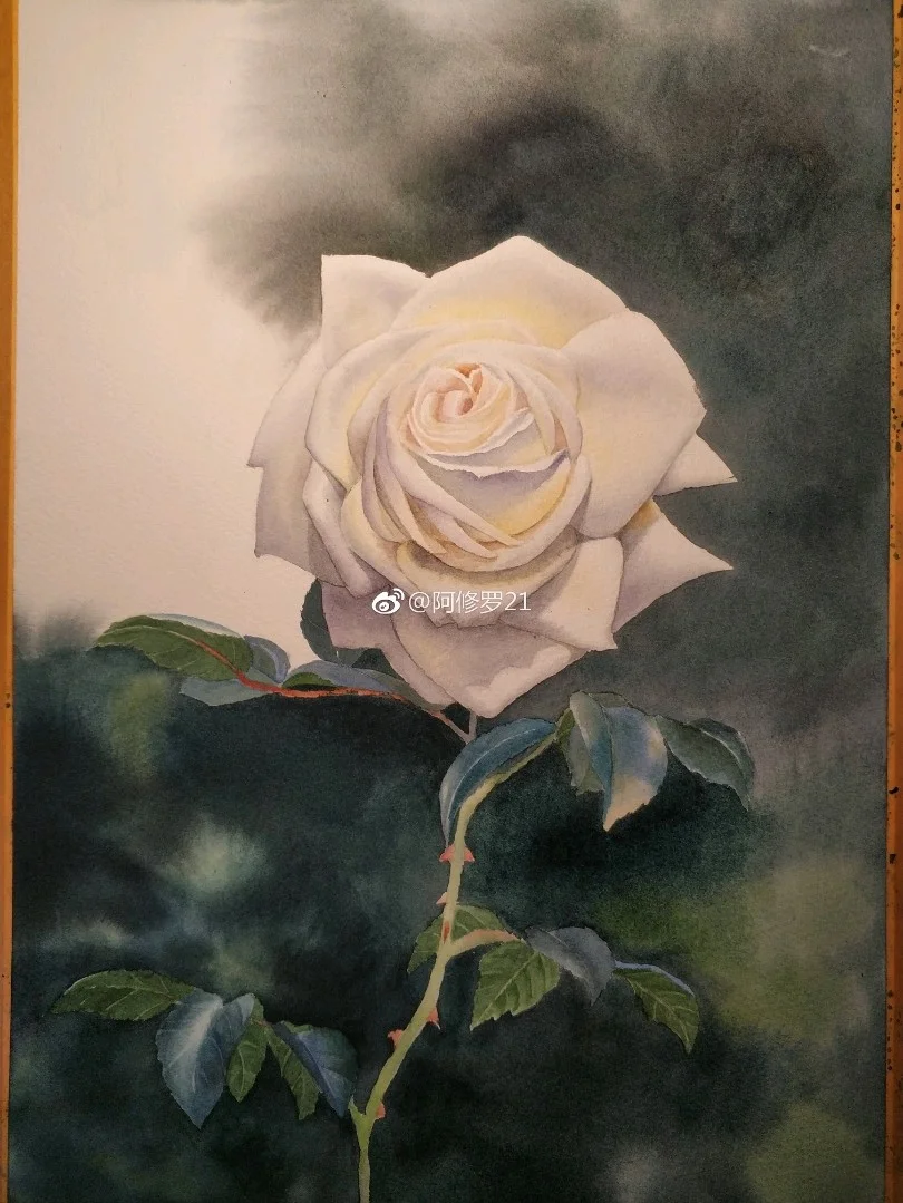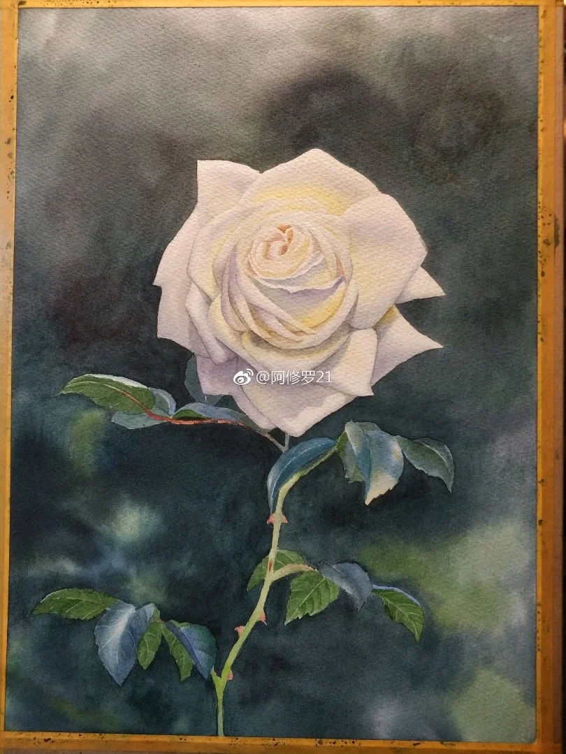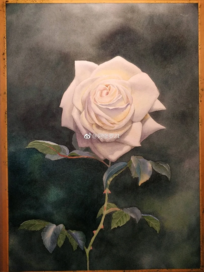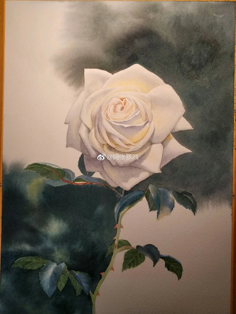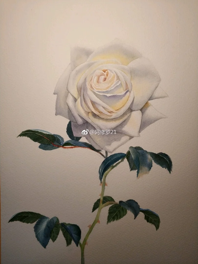 临摹黄有维老师的白玫瑰。看见白色花瓣总觉得很香,可能是联想到栀子花了。 获多福+MG。