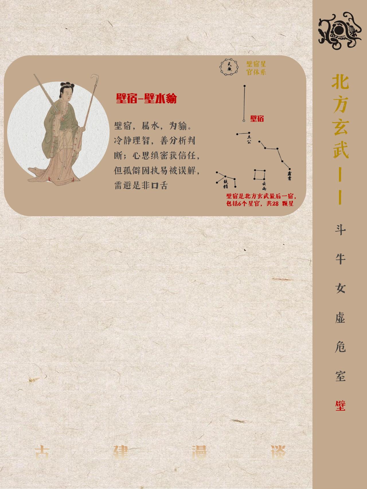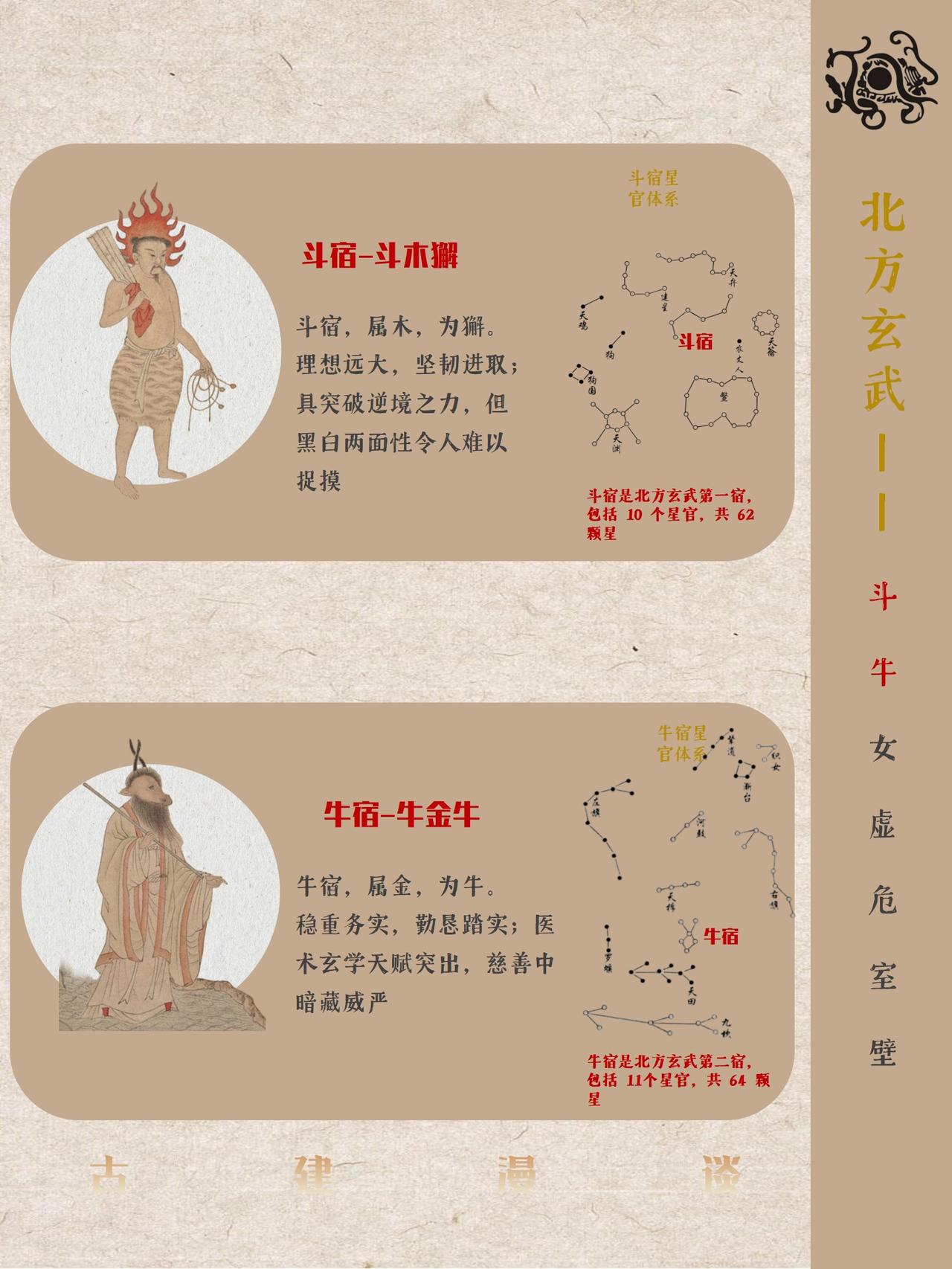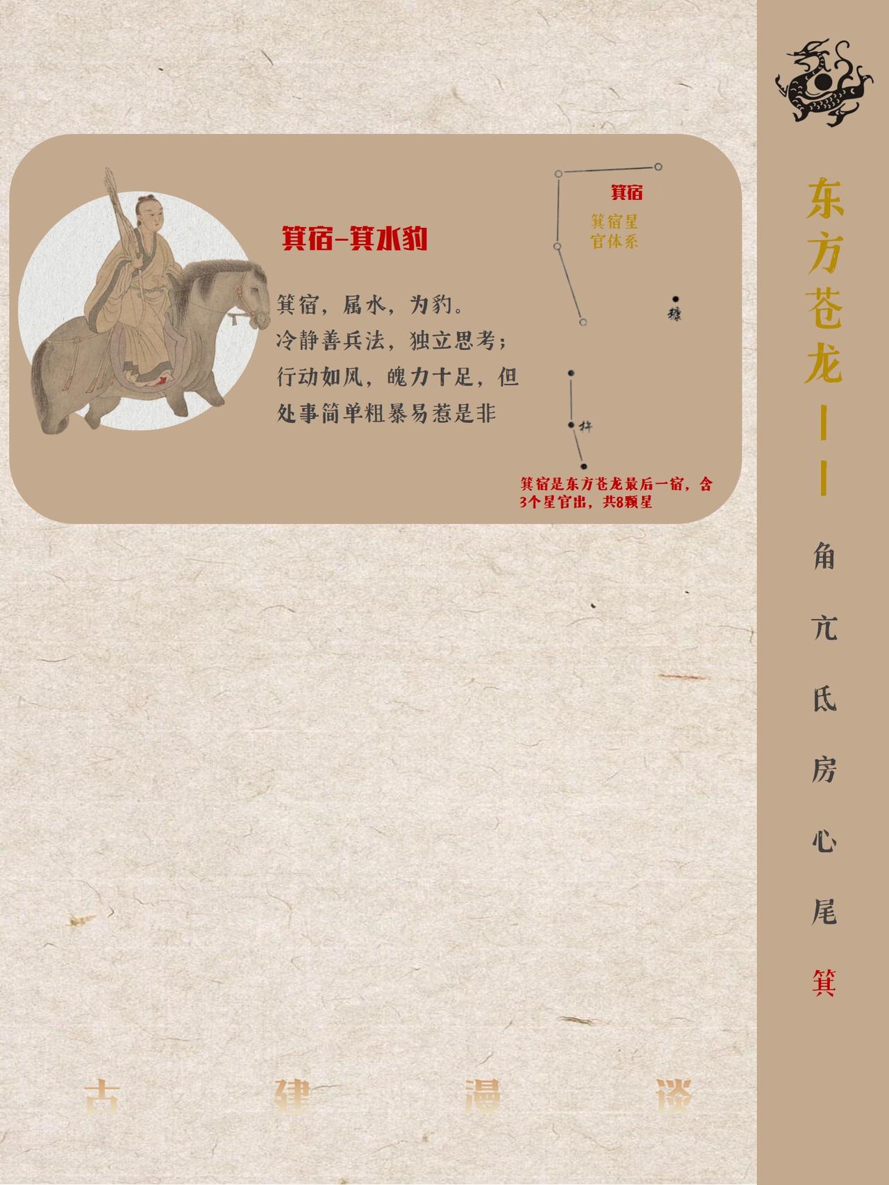 中国古代五星二十八宿神形图说 中国古人将天穹精准划分为东、南、西、北四宫,分别对应东方青龙、南方朱雀、西方白虎、北方玄武四大神兽图腾,每宫各选七组星宿构建成二十八座恒星坐标体系,通过观测日月五星在这些星宿间的运行轨迹来标记节气更迭、推定时间流转,这套融天文测量与哲学象征于一体的恒星坐标系统即被后世称为"二十八星宿"。 中国古人又创造性的将二十八星宿进行拟人化处理,每个星宿都对应有鲜明的性格特征,而定义这些性格特征背后的逻辑实则是对应每个星宿的客观特点。 古人认为“天垂象,见吉凶”,星宿运动对应人间兴衰。例如:角宿(青龙之首):象征“斗杀之冲”,故对应性格刚强、野心勃勃;轸宿(朱雀之尾):主悲痛凶险,故命格多坎坷后发迹等等。 本篇就不聊古建筑,而是和大家分享中国古人浪漫的天文认知。 二十八星宿人物图片截取自明代仇英版《五星二十八宿神形图》,大都会博物馆藏。