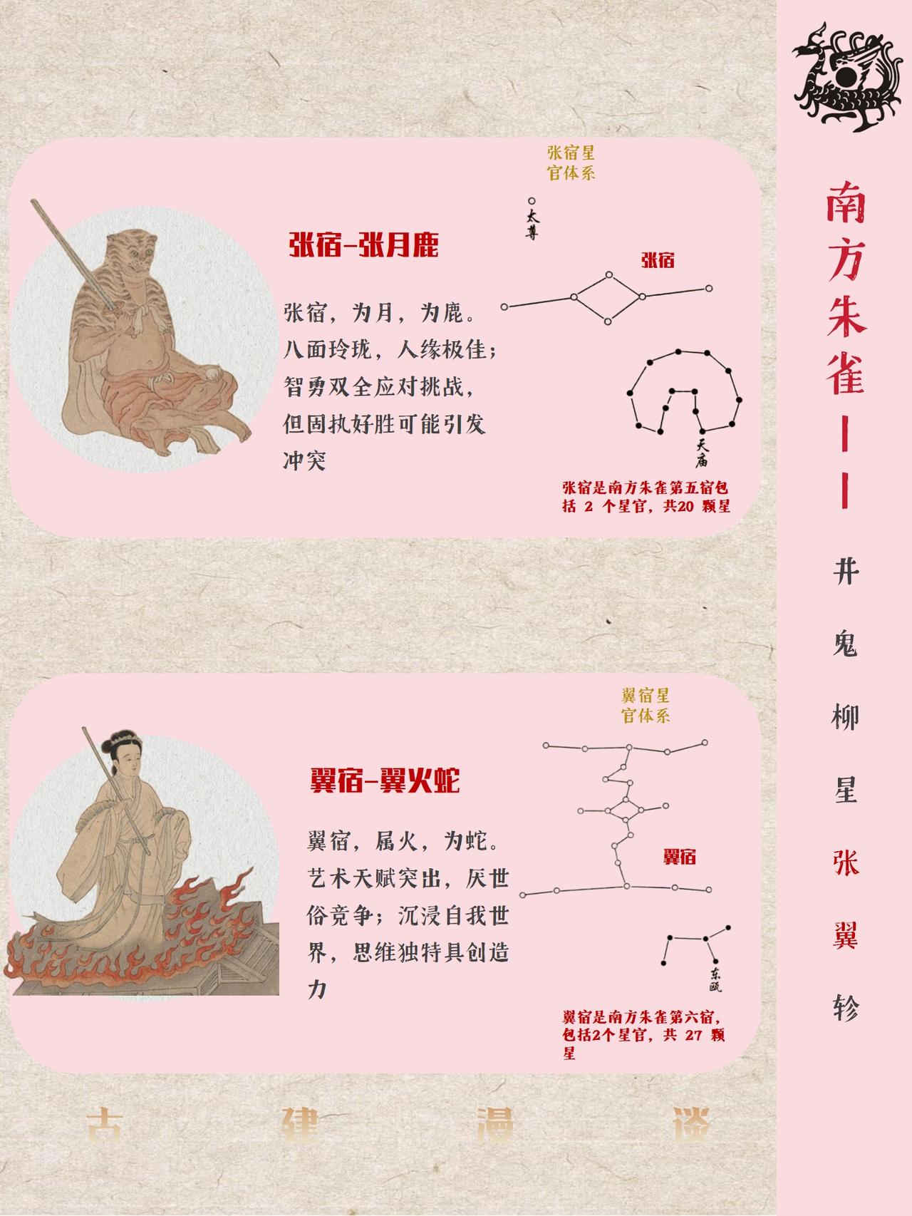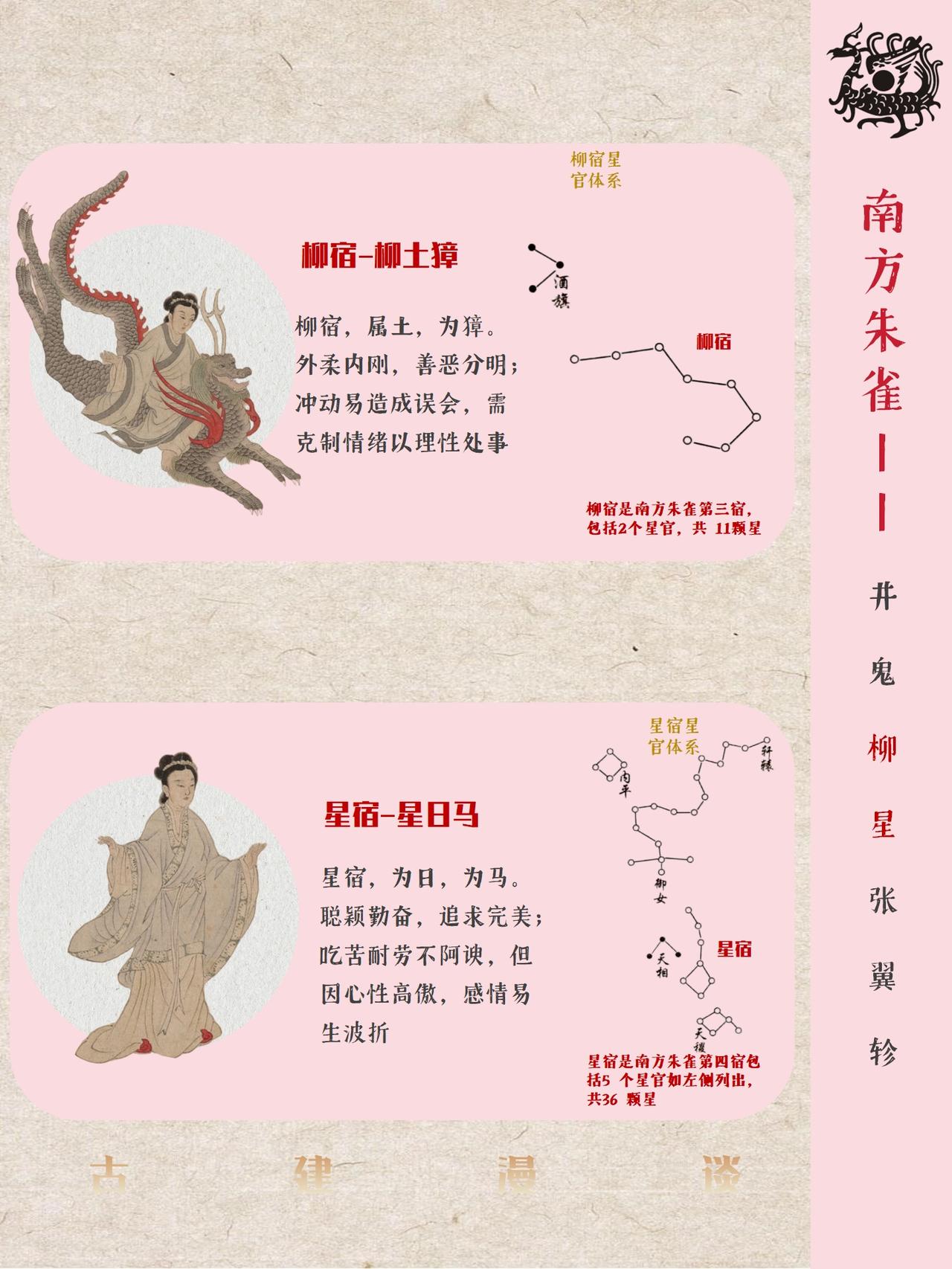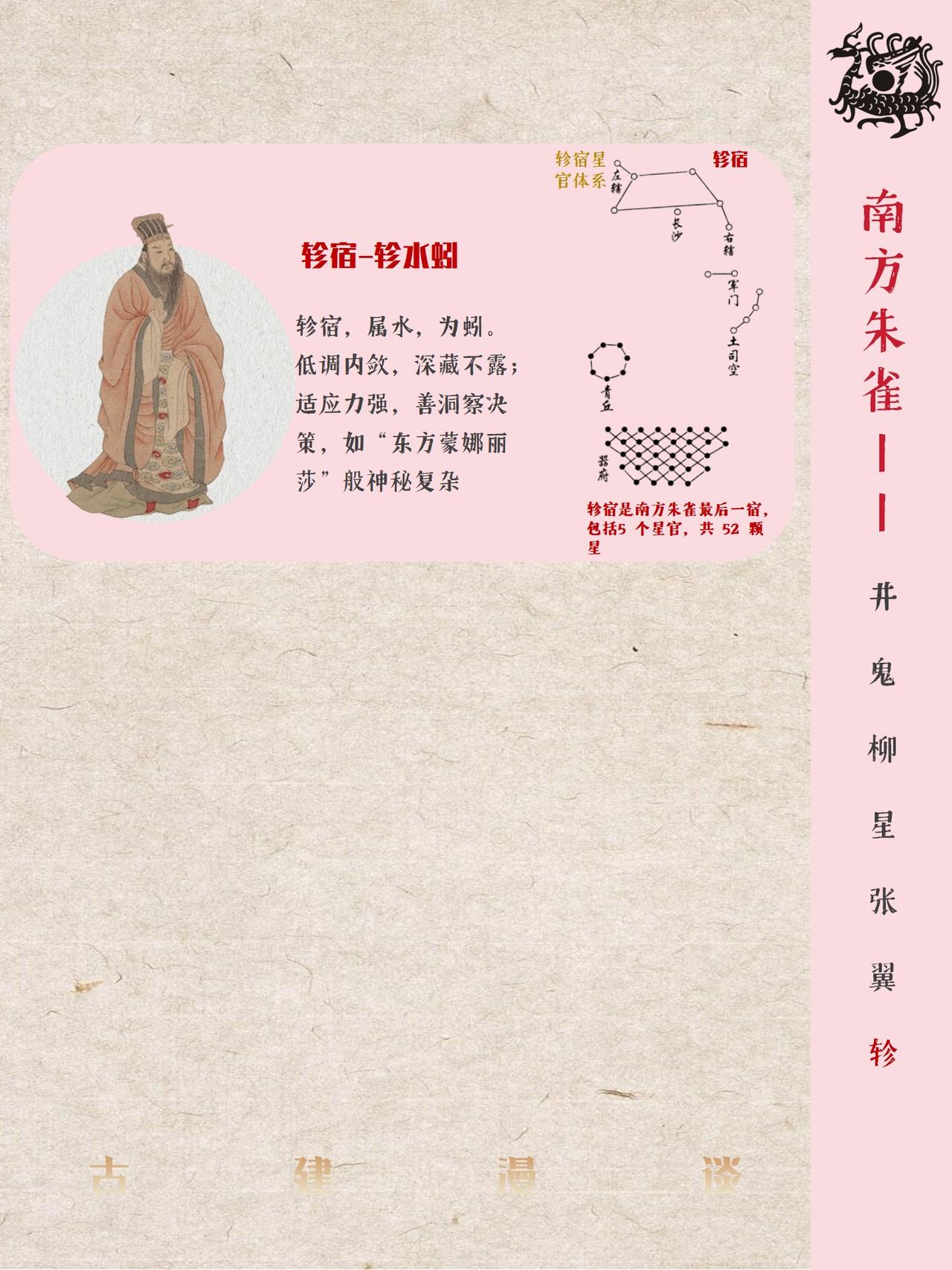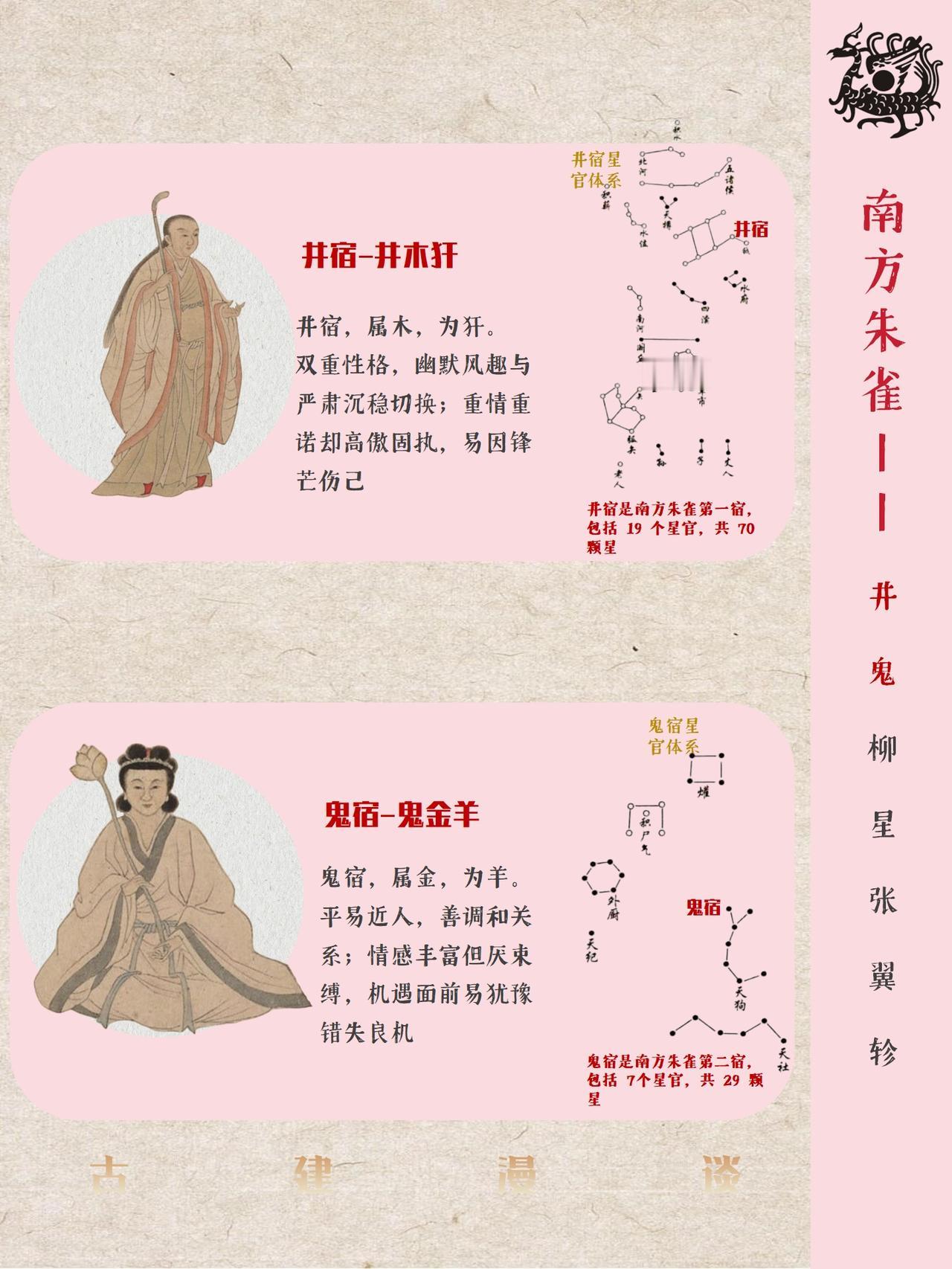 中国古代五星二十八宿神形图说 Ⅱ 中国古人将天穹精准划分为东、南、西、北四宫,分别对应东方青龙、南方朱雀、西方白虎、北方玄武四大神兽图腾,每宫各选七组星宿构建成二十八座恒星坐标体系,通过观测日月五星在这些星宿间的运行轨迹来标记节气更迭、推定时间流转,这套融天文测量与哲学象征于一体的恒星坐标系统即被后世称为"二十八星宿"。 中国古人又创造性的将二十八星宿进行拟人化处理,每个星宿都对应有鲜明的性格特征,而定义这些性格特征背后的逻辑实则是对应每个星宿的客观特点。 古人认为“天垂象,见吉凶”,星宿运动对应人间兴衰。例如:角宿(青龙之首):象征“斗杀之冲”,故对应性格刚强、野心勃勃;轸宿(朱雀之尾):主悲痛凶险,故命格多坎坷后发迹等等。 本篇继续和大家分享中国古人浪漫的天文认知。 二十八星宿人物图片截取自明代仇英版《五星二十八宿神形图》,大都会博物馆藏。