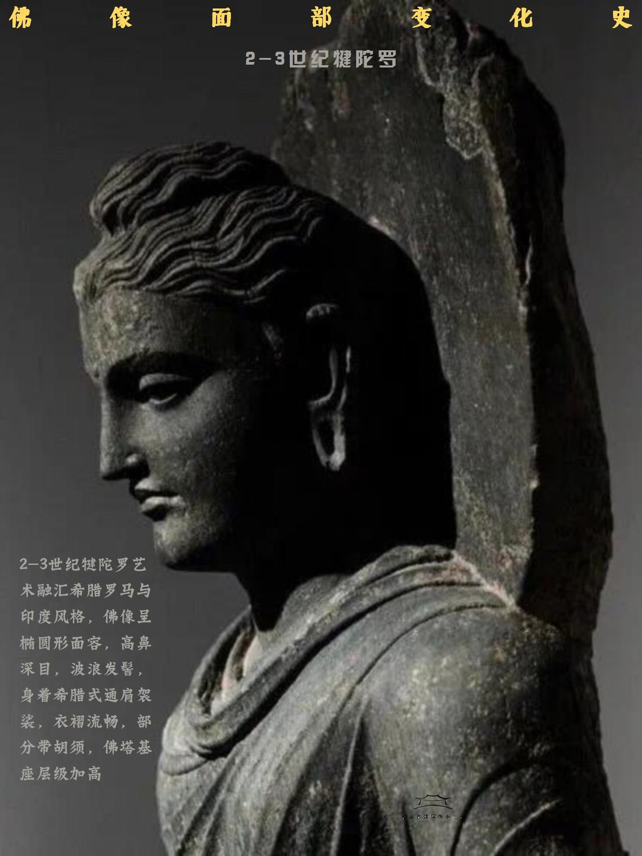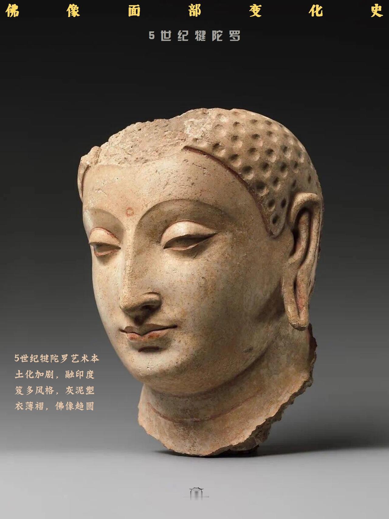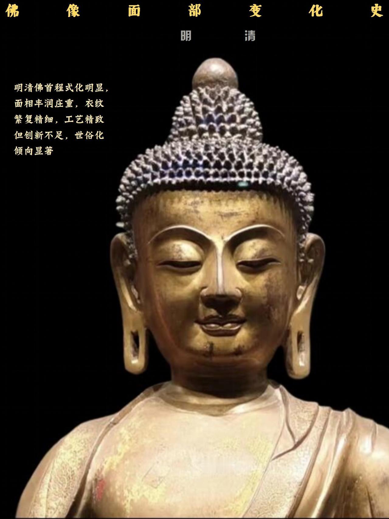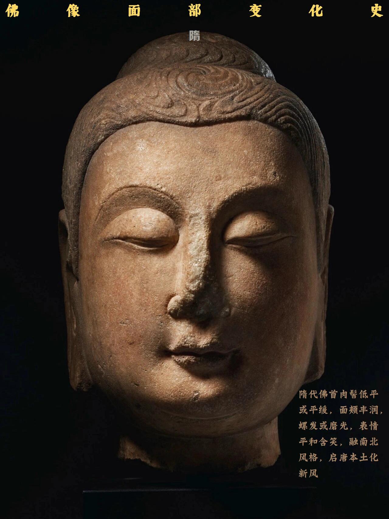 千年佛首风格演变史 从2-3世纪犍陀罗至明清时期,中国佛首艺术经历了显著的风格演变。 犍陀罗时期(2-3世纪)佛首以希腊化特征为主,高鼻深目,肉髻高耸如阿波罗式发髻,发式多采用水波或涡卷纹,通肩袈裟衣纹厚重写实,带有印度伟人相与希腊神像的融合特质。 北魏时期(4-6世纪)汉化加深,佛首面相渐趋柔和扁平,肉髻仍高耸但发式出现螺发雏形,水波发减少,五官清秀含笑,体现“秀骨清像”的中原审美。 北齐北周(6世纪中后期)回归印度笈多风格,面庞圆润,肉髻平缓,螺发流行,衣纹简化,双目微垂显沉思之态。 隋代(6-7世纪)作为过渡期,佛首融合南北特征,肉髻平缓,面部丰满,发式多样但螺发渐盛。 唐代(7-10世纪)本土化成熟,头型饱满,肉髻高耸,螺发涡卷繁复,眉弓高挑,双唇紧闭显威严,雕刻技法刚柔并济。 宋代(10-13世纪)世俗化趋势明显,肉髻低圆如丘,面相方圆近俗,表情含悲悯,衣纹写实飘逸。 元代(13-14世纪)受藏传佛教影响,佛首颧骨凸出,躯体健硕,衣纹简洁,保留部分汉地特征。 明清(14-20世纪)程式化严重,肉髻低平,面相丰润庄重,装饰繁复但创新不足,世俗化倾向达到顶峰。整体演变脉络呈现从印度化、汉化到本土化,最终走向世俗与程式的历史轨迹。 部分图片截取自网络二次创作,侵删。 健陀罗