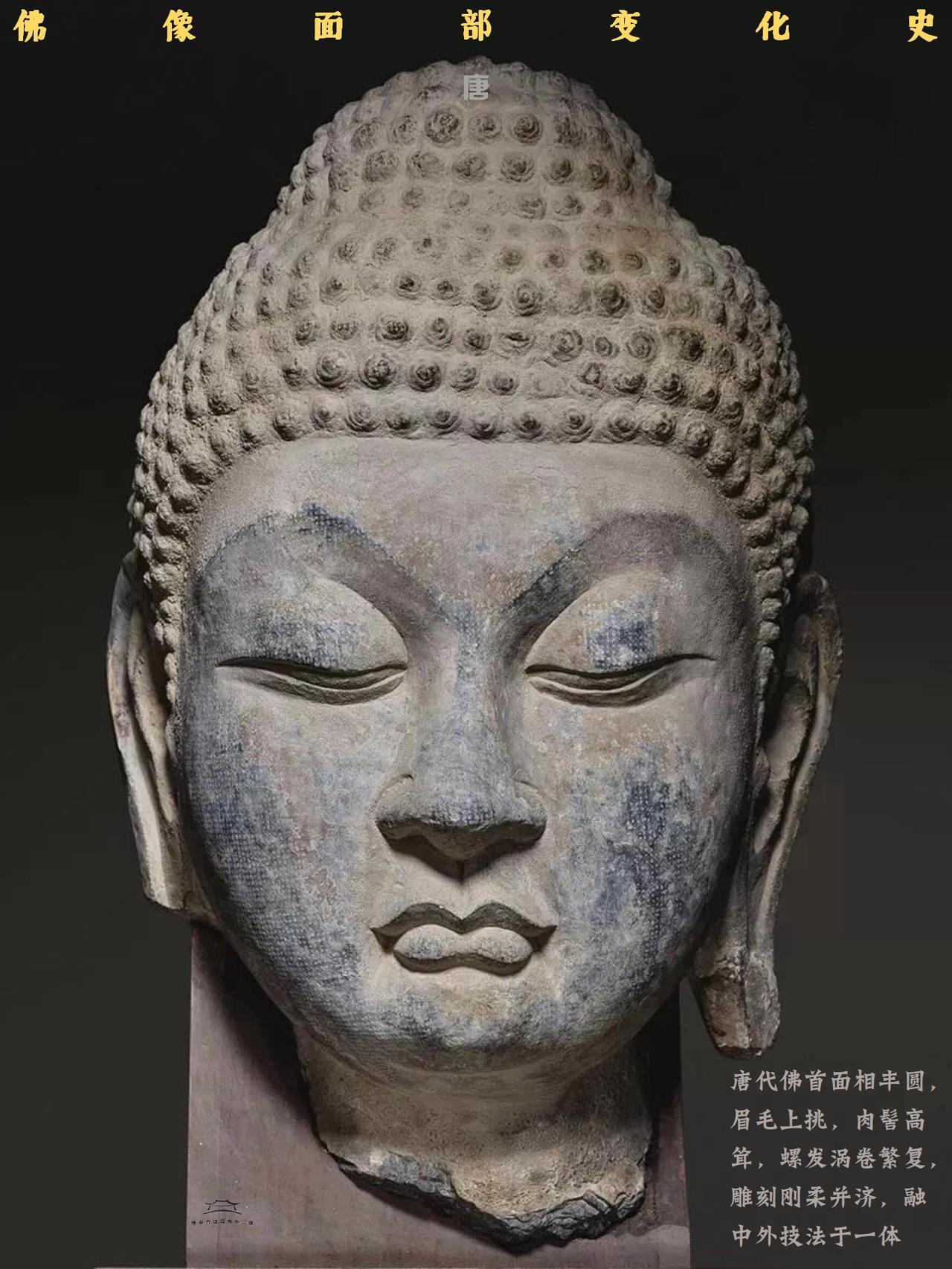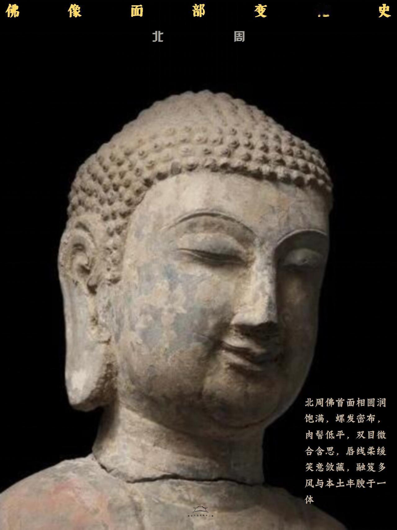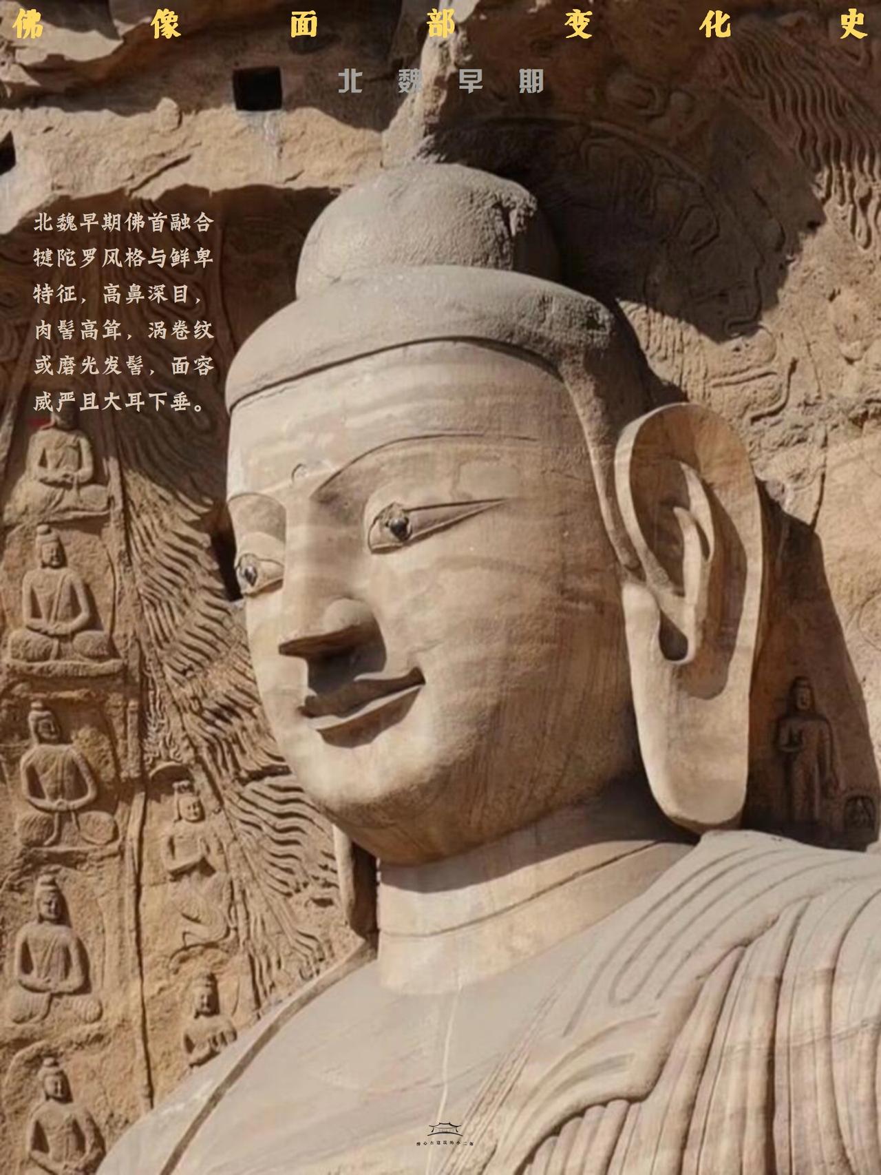 千年佛首风格演变史 从2-3世纪犍陀罗至明清时期,中国佛首艺术经历了显著的风格演变。 犍陀罗时期(2-3世纪)佛首以希腊化特征为主,高鼻深目,肉髻高耸如阿波罗式发髻,发式多采用水波或涡卷纹,通肩袈裟衣纹厚重写实,带有印度伟人相与希腊神像的融合特质。 北魏时期(4-6世纪)汉化加深,佛首面相渐趋柔和扁平,肉髻仍高耸但发式出现螺发雏形,水波发减少,五官清秀含笑,体现“秀骨清像”的中原审美。 北齐北周(6世纪中后期)回归印度笈多风格,面庞圆润,肉髻平缓,螺发流行,衣纹简化,双目微垂显沉思之态。 隋代(6-7世纪)作为过渡期,佛首融合南北特征,肉髻平缓,面部丰满,发式多样但螺发渐盛。 唐代(7-10世纪)本土化成熟,头型饱满,肉髻高耸,螺发涡卷繁复,眉弓高挑,双唇紧闭显威严,雕刻技法刚柔并济。 宋代(10-13世纪)世俗化趋势明显,肉髻低圆如丘,面相方圆近俗,表情含悲悯,衣纹写实飘逸。 元代(13-14世纪)受藏传佛教影响,佛首颧骨凸出,躯体健硕,衣纹简洁,保留部分汉地特征。 明清(14-20世纪)程式化严重,肉髻低平,面相丰润庄重,装饰繁复但创新不足,世俗化倾向达到顶峰。整体演变脉络呈现从印度化、汉化到本土化,最终走向世俗与程式的历史轨迹。 部分图片截取自网络二次创作,侵删。 健陀罗
